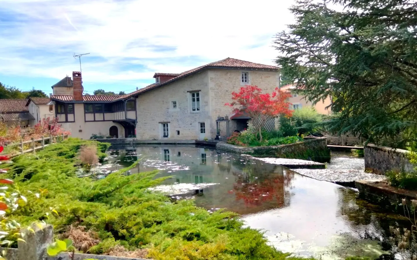 New listing a must-see, exceptional mill, ready for immediate occupation in complete comfort set in the heart of a sought after village with a boulangerie and a short drive to shops and commerce and restaurants. The clever layout includes an additional separate 2 bedrooms apartment with its own private entrance to complete. The magnificent aquatic gardens make the most of the unique location carefully created over many years by the current owners. Perfect for dining al fresco, and enjoying fishing and boating on those lazy summer days.