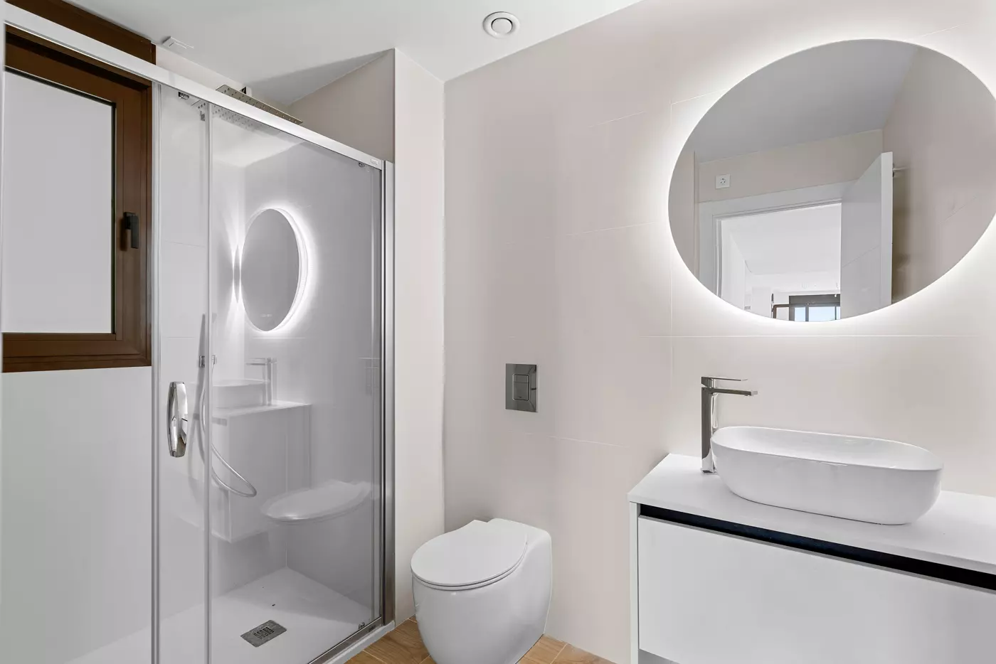This spacious penthouse covers an impressive 80 m², featuring two roomy bedrooms and two chic bathrooms. The open-plan living and dining area is designed with a modern touch, filling your space with an abundance of natural light. Imagine sipping your morning coffee in your east-facing private terrace, basking in the gentle sun. And let’s not forget the jaw-dropping 95 m² solarium, perfect for sunbathing or hosting friends at your very own barbecue area!