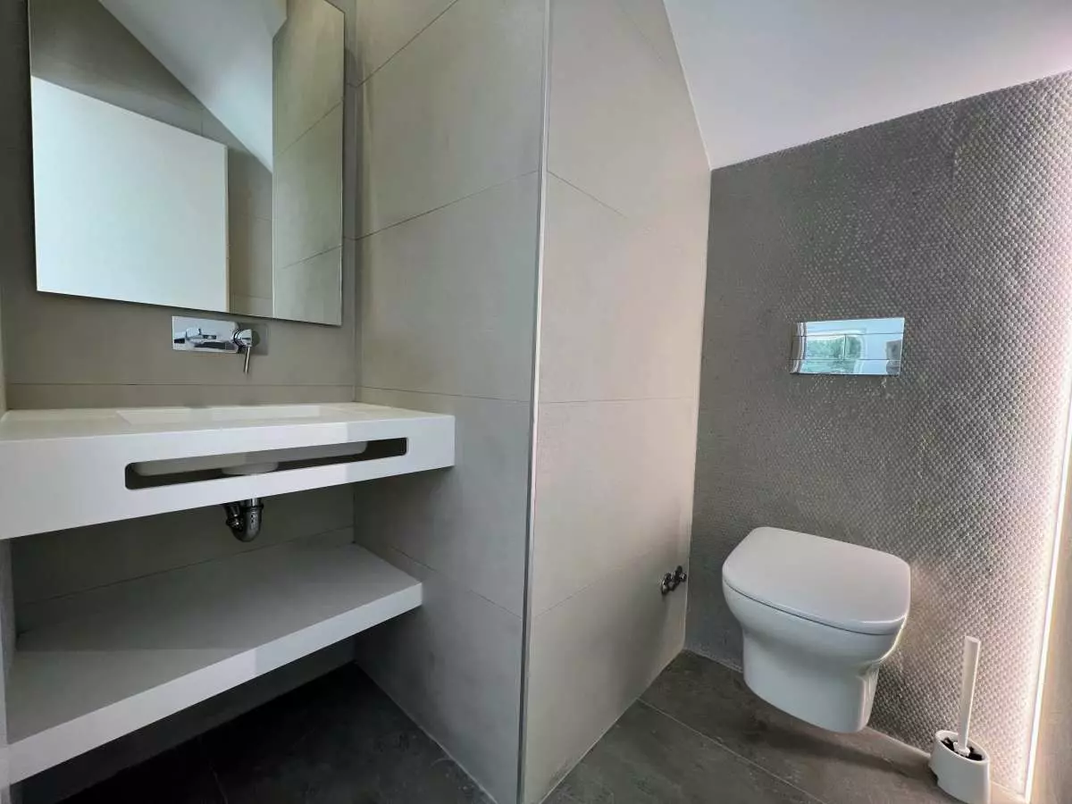 As soon as you step through the door, you’re greeted by an inviting living area that flows seamlessly into a spacious open-plan kitchen. The layout feels contemporary and bright, ideal for both entertaining guests or enjoying quiet family meals. You will also notice the convenient guest toilet located just next to the stairs leading to the first floor, adding to the practicality of the space.