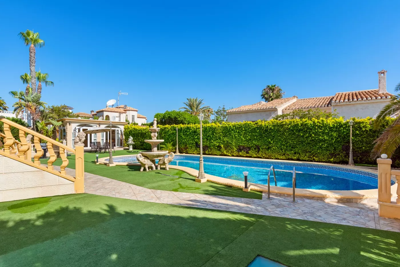 If you’ve ever dreamt of living just steps away from a stunning beach, this is your chance. Located a mere fifty meters from the sparkling sands of Playa Flamenca, this four-storey luxury mansion offers everything you could want and more. Surrounded by beautifully landscaped gardens featuring a waterfall and a spacious 15-meter swimming pool, it’s the perfect oasis for relaxation and entertainment.