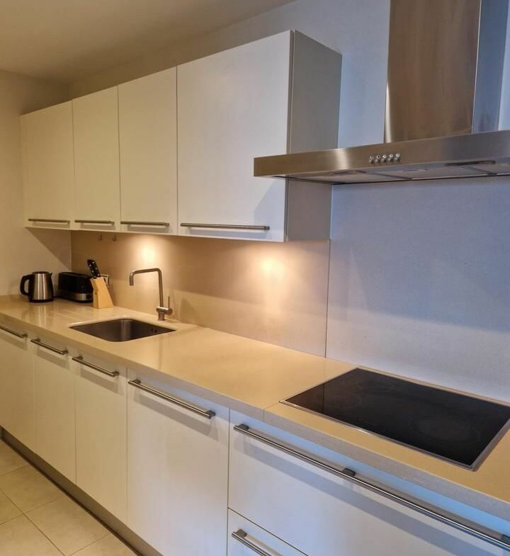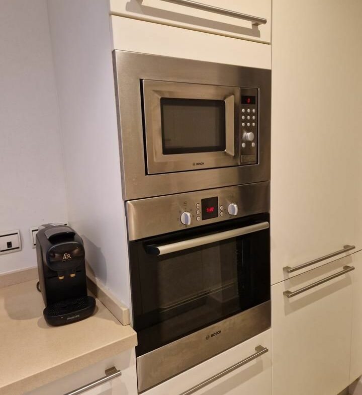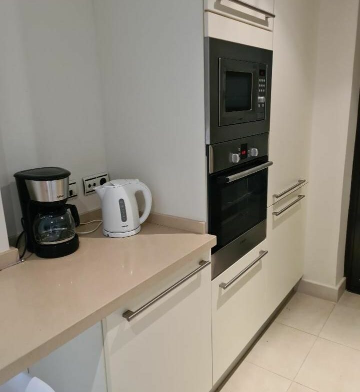 Delight in superior quality with an open-concept kitchen leading into the spacious living area. The kitchen comes equipped with top-brand appliances and modern finishes, ensuring a culinary experience that meets the highest standards. With aluminum carpentry windows, electric shutters, and a sleek design, this apartment promises a first-class living experience.