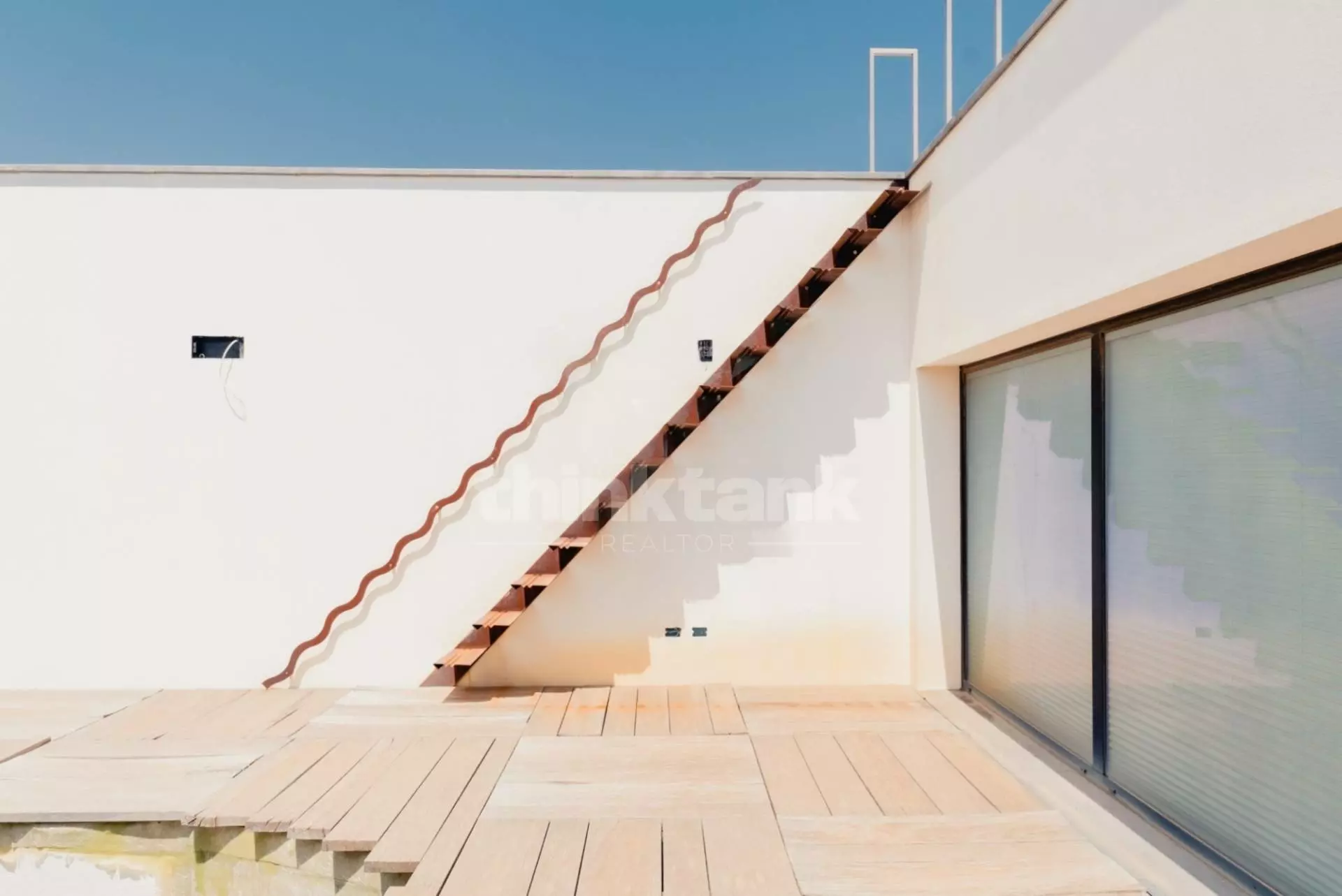 On the ground floor, on the other hand, there is the living area characterized by a kitchen, a bathroom, pantry, dining room and living room overlooking the covered veranda characterized by two Corten steel elements.