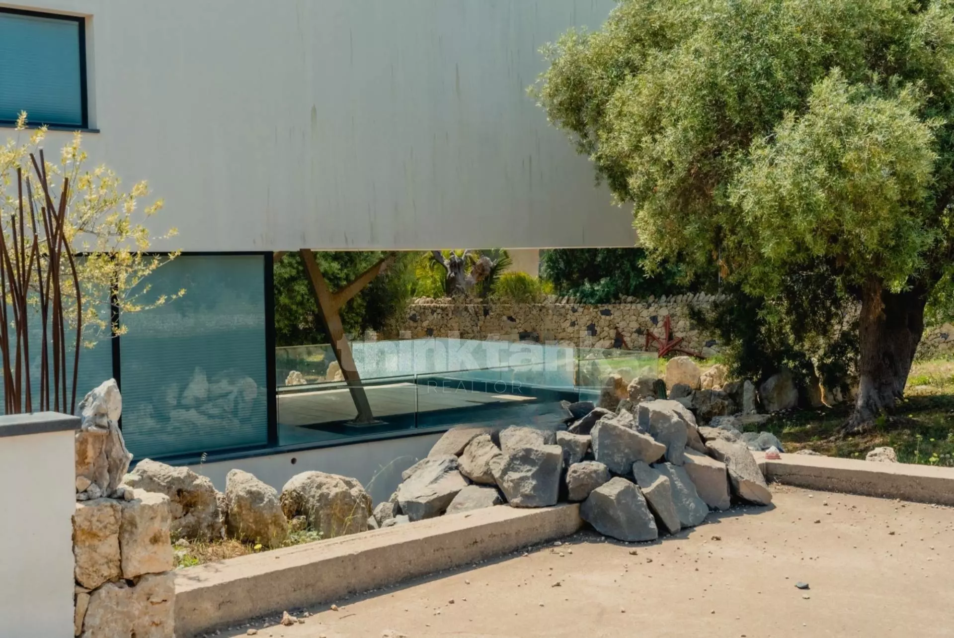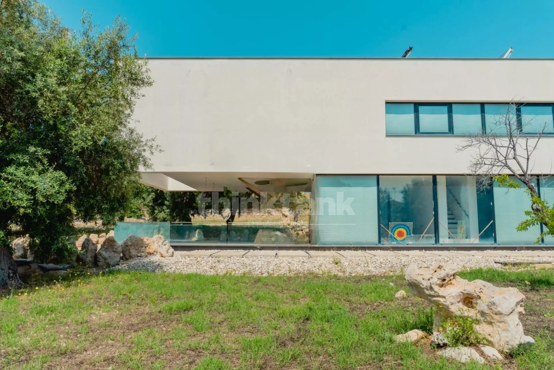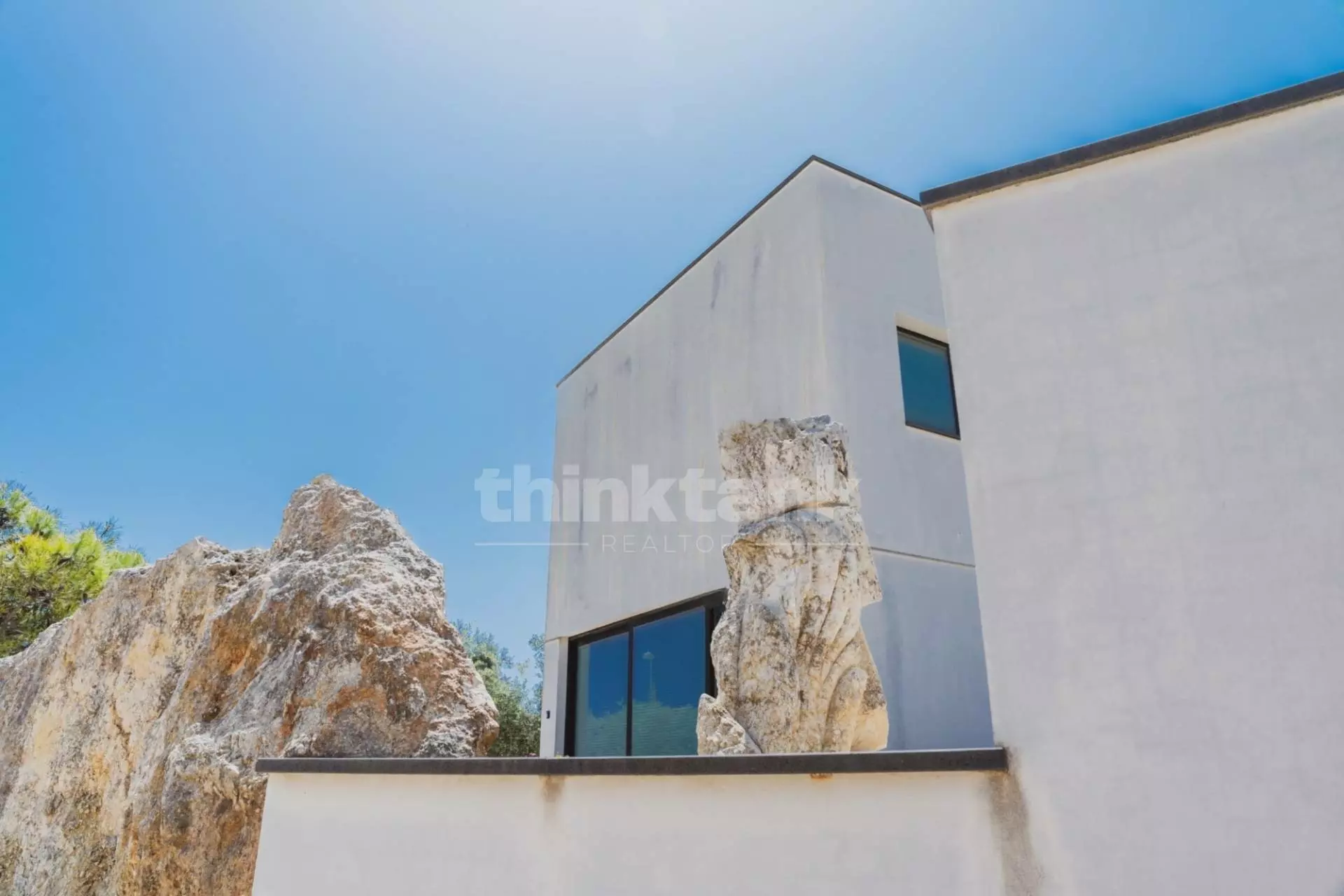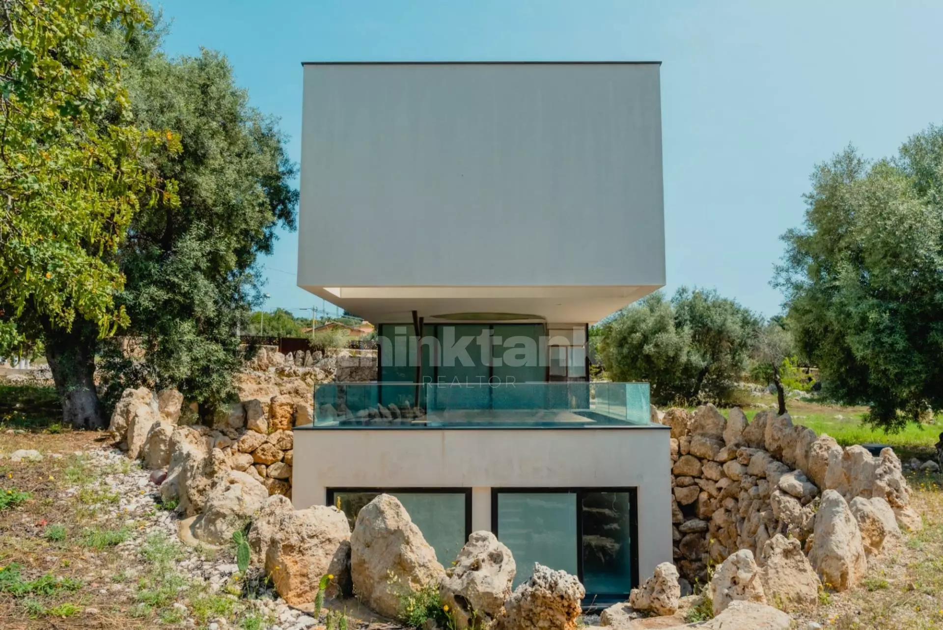 Syracuse, Tremmilia: A few kilometers from the city, in a residential area, we offer for sale a villa built into the typical rock of the Sinerchia area, built by a nationally renowned architect with harmonious and singular shapes.