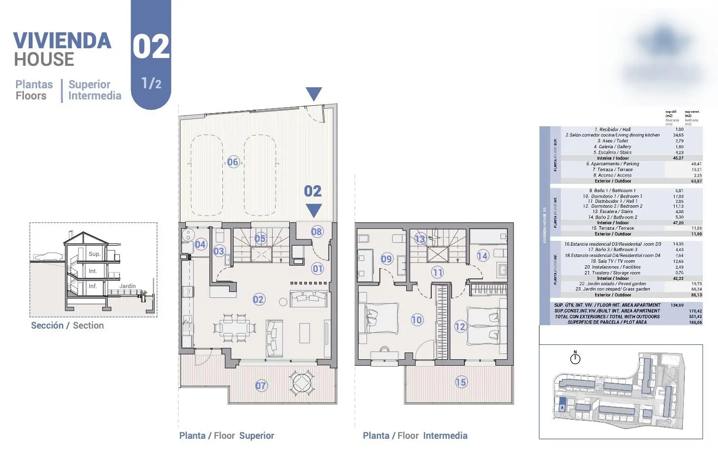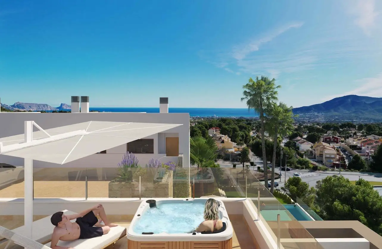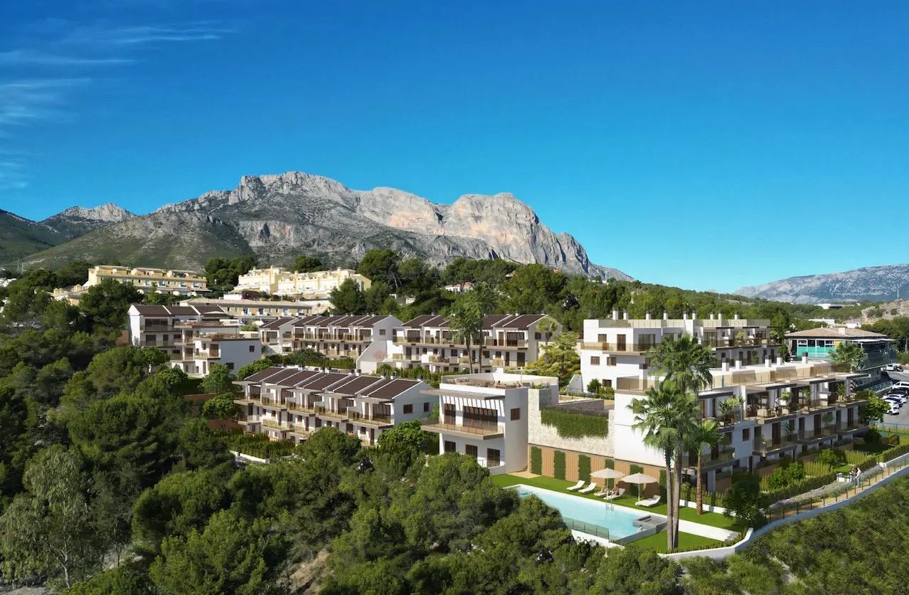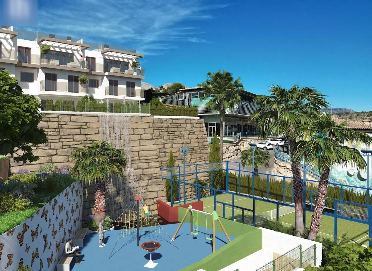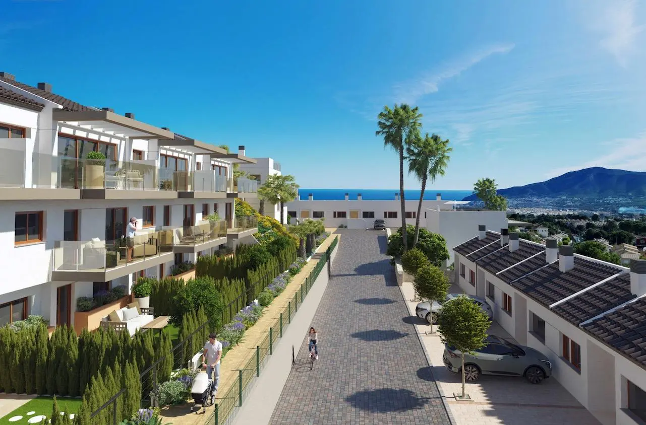 Me gustaría presentarles un complejo de casas adosadas en La Nucia cerca de todas las infraestructuras y con preciosas vistas al mar y montaña. Estará ubicado cerca de la carretera principal, brindando una sensación de ciudad y fácil acceso al transporte a cualquier punto de interés. Desde aquí está cerca de la ciudad deportiva, colegio Elías, comercios, Benidorm, Finestrat, Altea y las Playas del Albir.~~Todas las casas adosadas se construirán en 3 niveles con una superficie útil total de unos 130 metros. Algunos tendrán solarium en la azotea y otros no. El complejo también contará con una villa individual. Por 15 mil adicionales te instalarán un ascensor y moverte entre los tres niveles será aún más cómodo. Cada casa tiene dos plazas de aparcamiento, varias terrazas y su propio pequeño patio.~~El nivel principal está representado por un amplio salón con cocina abierta y aseo. Dos recámaras en el nivel medio con sus propios baños. El promotor planificará el nivel inferior de la casa según sus deseos. Necesita 2 dormitorios más, ¡por favor! Si desea un dormitorio y una oficina espaciosa, ¡no hay problema! Si desea un estudio grande, sin preguntas, ¡el desarrollador cumplirá todos sus caprichos!~~El desarrollador ofrece una amplia selección de materiales de acabado y soluciones de color para muebles. Todo ello para presupuestos bastante económicos, que podéis ver en la última imagen del post.~~La urbanización estará cerrada al exterior y contendrá una piscina comunitaria, parque infantil y zonas recreativas.