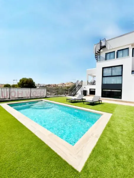 This exclusive new residential project offers a collection of eight detached and semi-detached homes. The properties are situated in a prime location near a well-known golf course in the Alicante region, specifically in Algorfa. These homes are designed with contemporary aesthetics, focusing on comfort and practical living. Each residence features two bedrooms and two bathrooms.