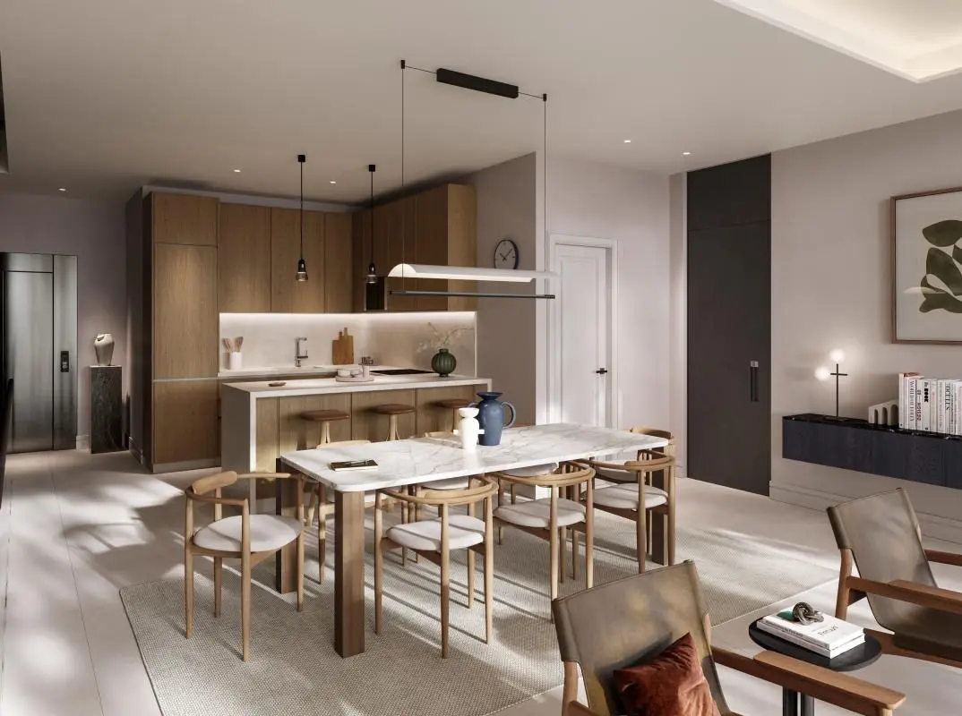 The finishes reflect a high standard of quality, with materials selected from top brands, adding sophistication, durability, and style. Contemporary design balances with noble materials to create a welcoming atmosphere, tailored for those who value detail and seek a home that exudes quality in every corner.