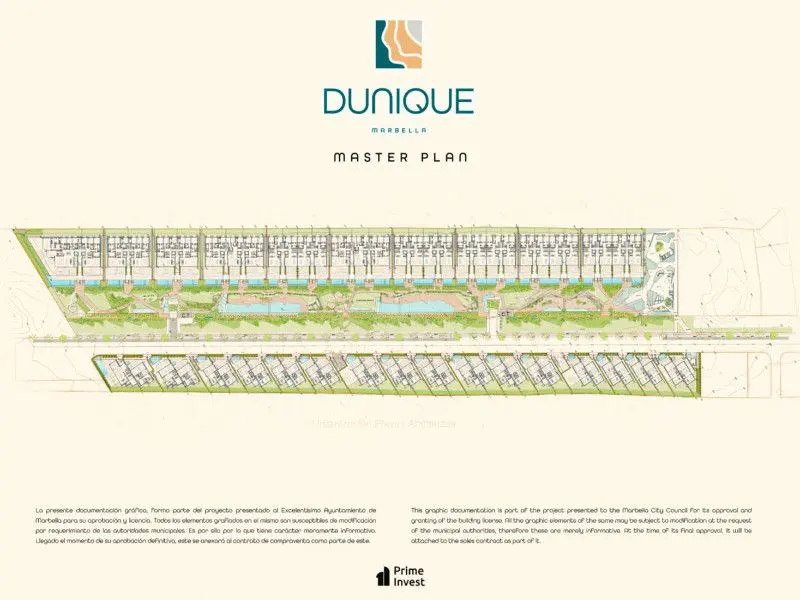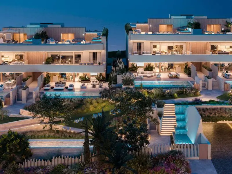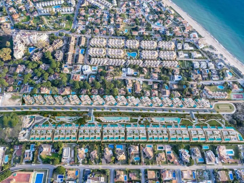 Uniquely positioned on the beachfront, this complex benefits from an enviable spot next to a dune reserve with significant ecological value, serving both as a safeguard for the environment and a natural barrier between the homes and the sea. Its proximity to key transport links makes access to golf courses, sports clubs, and shopping centers swift and convenient.