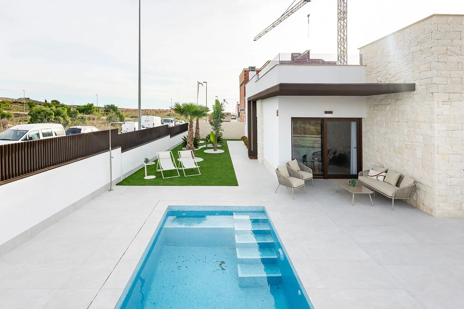 The paired homes in Orihuela are characterized by their exterior sophistication and practicality. Each one features a private garden, perfect for enjoying the Mediterranean climate and outdoor gatherings. Additionally, they have a terrace that expands entertainment options. Private pools add an exclusive touch, allowing residents to cool off in the comfort of their home. Some types even offer a solarium for sunbathing.
