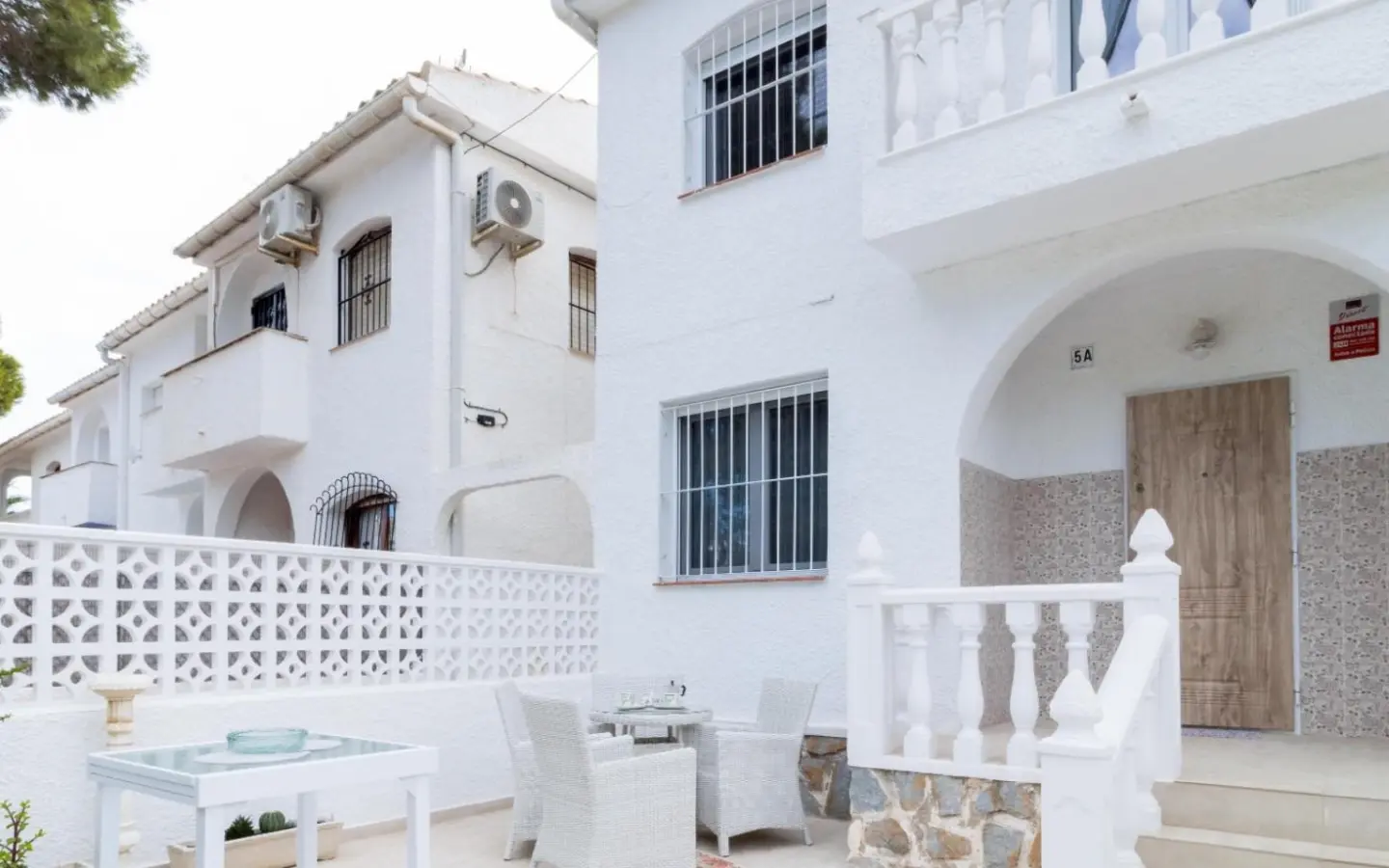 ~Welcome to this fully renovated townhouse located in the very heart of La Zenia, set directly within a peaceful green park.The property is situated just 350 metres from La Zenia Beach and 950 metres from the famous La Zenia Boulevard shopping centre. ~This Spanish-style home has been completely renovated to a high standard of quality and taste. ~Inside you will find a spacious living room and a brand-new fully equipped kitchen including a drinking water filtration system.The home offers three bedrooms with beautiful park views and three bathrooms, including one located in the courtyard together with a laundry area. ~All windows feature SOLAR glazing for improved indoor climate. The property includes alarm system, reinforced entrance doors, air conditioning, internet and Smart TV.High-quality vinyl flooring with underfloor heating is installed on the ground floor and in the bathrooms.Electrical installation and plumbing have been fully renewed. ~Outdoor areas include a cosy courtyard with barbecue area, terrace and patio.A private covered parking space and storage room are included. ~The property is sold fully furnished, offering a unique opportunity to enjoy coastal living with modern comfort.A top location combining central infrastructure, walking distance to the best beaches and remarkable peace and tranquillity. ~Do not miss the opportunity to enjoy life even more. ~Key FeaturesTownhouse · 2 floorsBuilt area: approx. 80 m2Plot: 50 m23 bedrooms · 3 bathroomsTerrace & balconyFully renovatedFitted wardrobesStorage roomAir conditioningCovered parking includedSold furnished