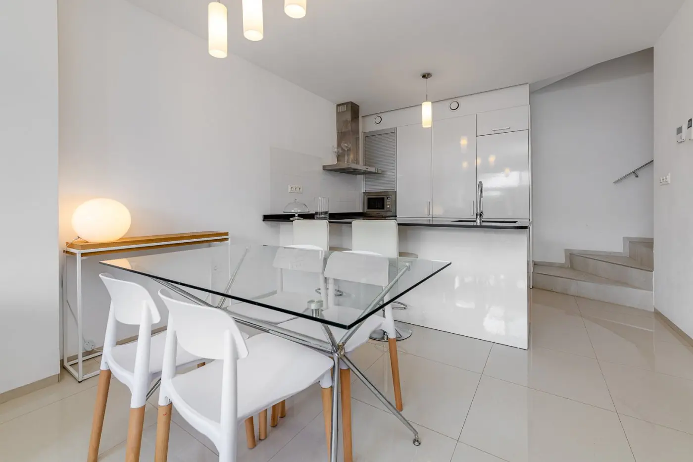 The townhouse features an open-plan design combining the living room and kitchen, creating a seamless flow between spaces. On the lower level, there is a conveniently located bedroom along with a bathroom, offering practicality for residents and guests.