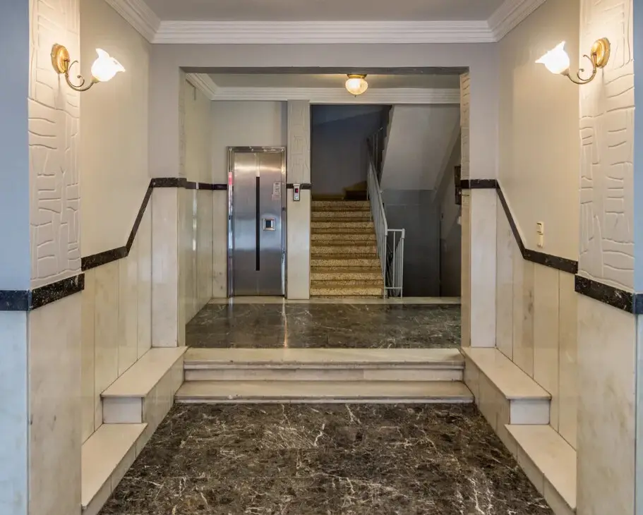 The apartment is situated within a building that provides convenient access via an elevator, making it suitable for those needing mobility accommodations. With a front layout, the flat is designed for straightforward and efficient use of space. This feature, along with provided furnishings, can simplify the moving process and set-up for new occupants.