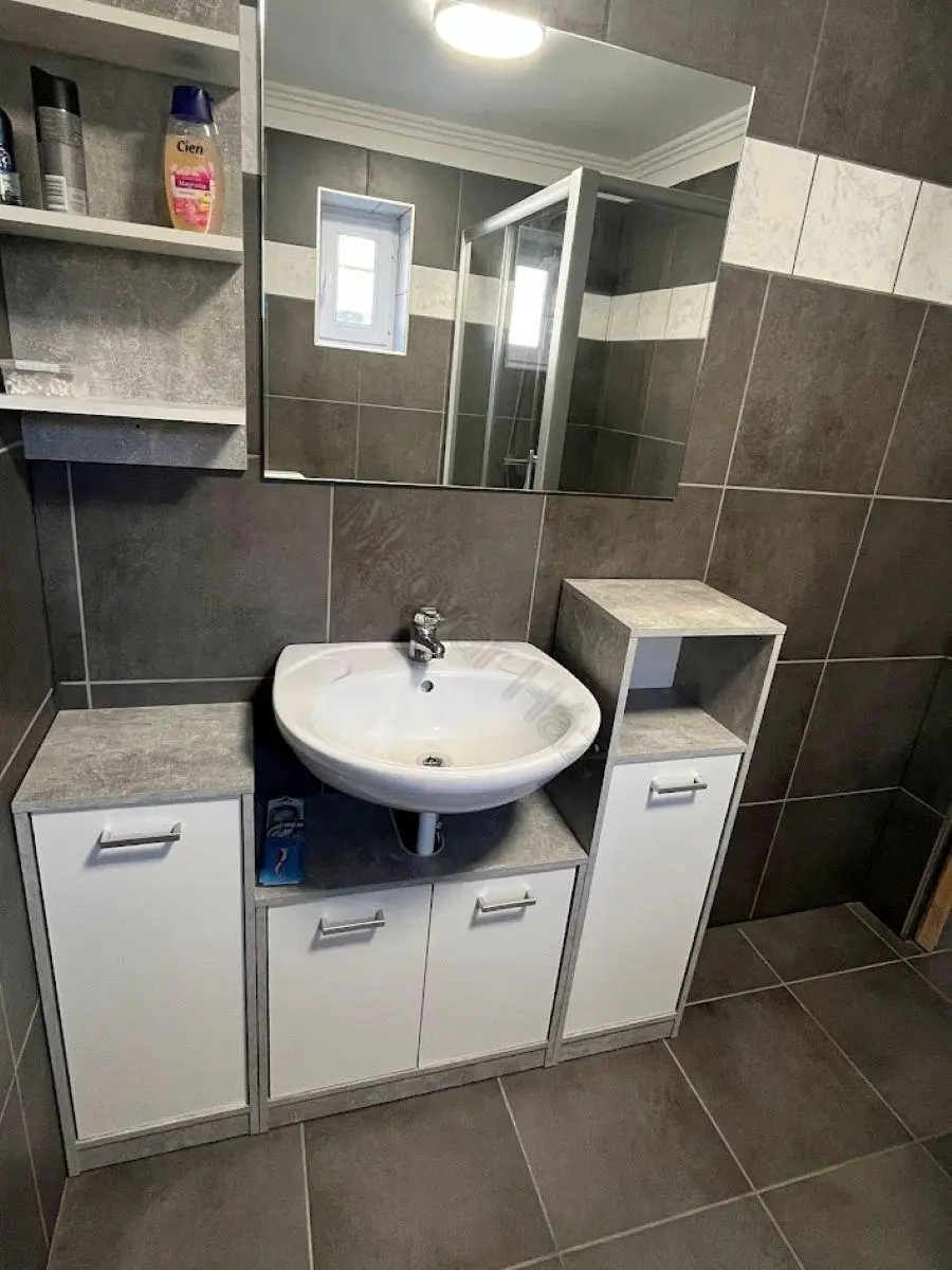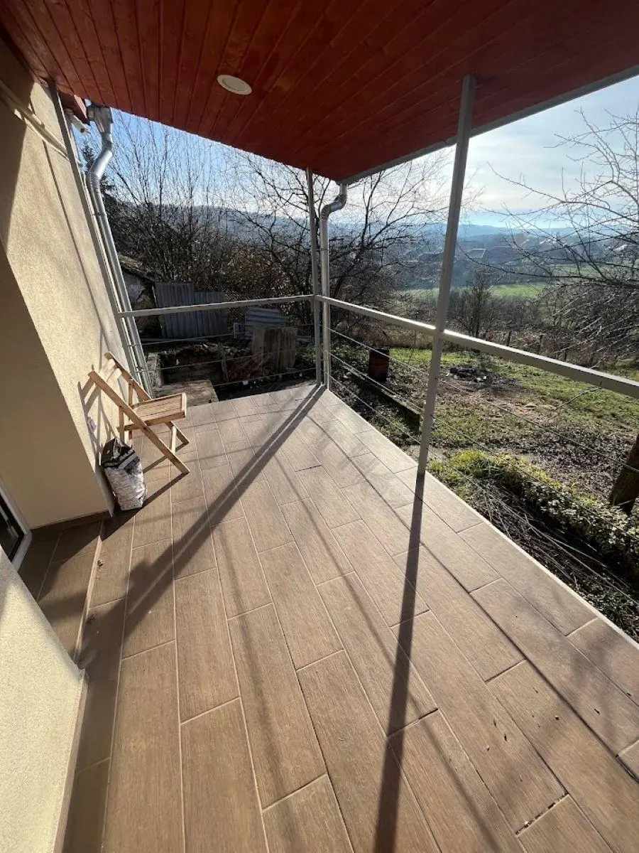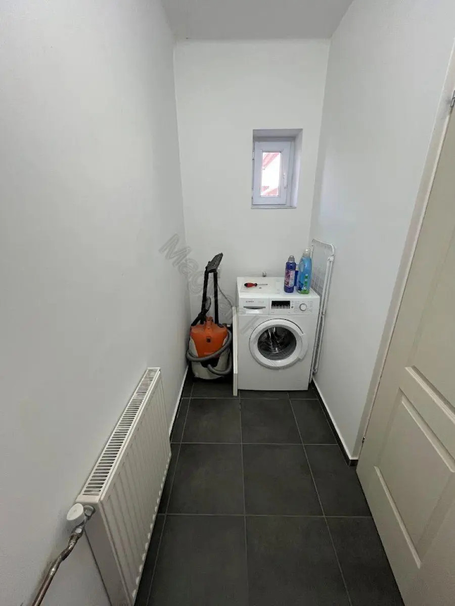 Below the house is a cellar. This dry space currently houses the central heating system, the electric boiler, and offers ample storage. It serves as a practical area for utility functions, ensuring that the rest of the home remains uncluttered.