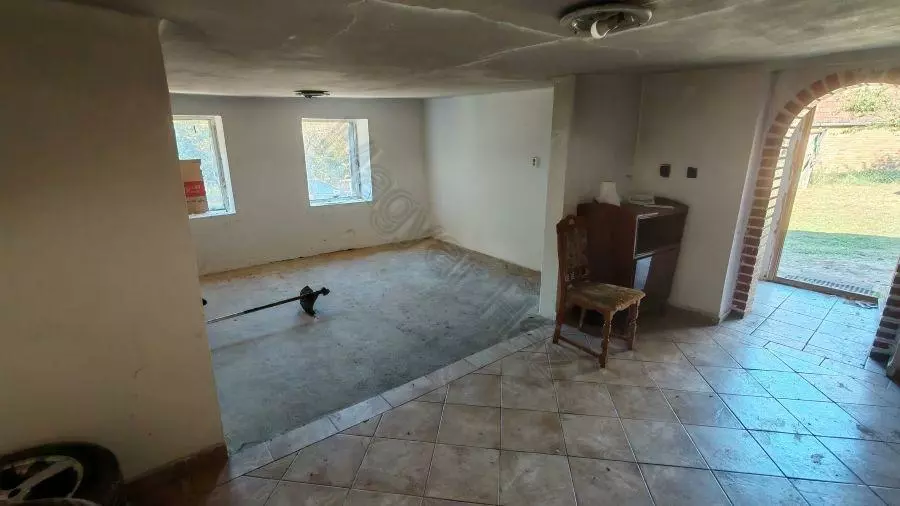 The property is in need of extensive renovations, yet it holds significant potential. Inside, you’ll find a hallway, a living room, a bedroom, a kitchen, a bathroom, and a storage room, which collectively offer a solid foundation for customization.