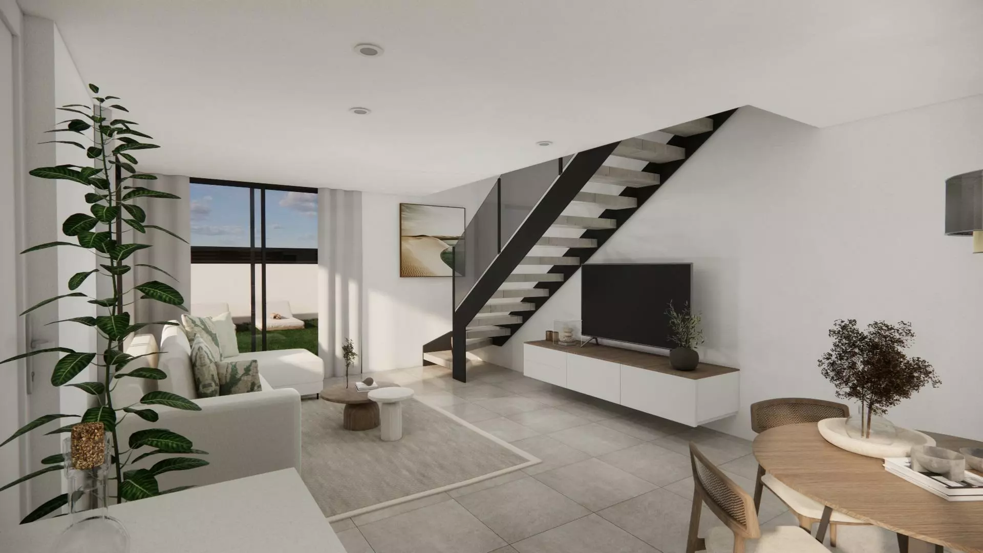 Each villa features a contemporary layout spread over two floors, comprising 3 bedrooms and 2 bathrooms. The design includes an uncovered terrace on the first floor, and there’s an optional rooftop solarium available for an additional fee.