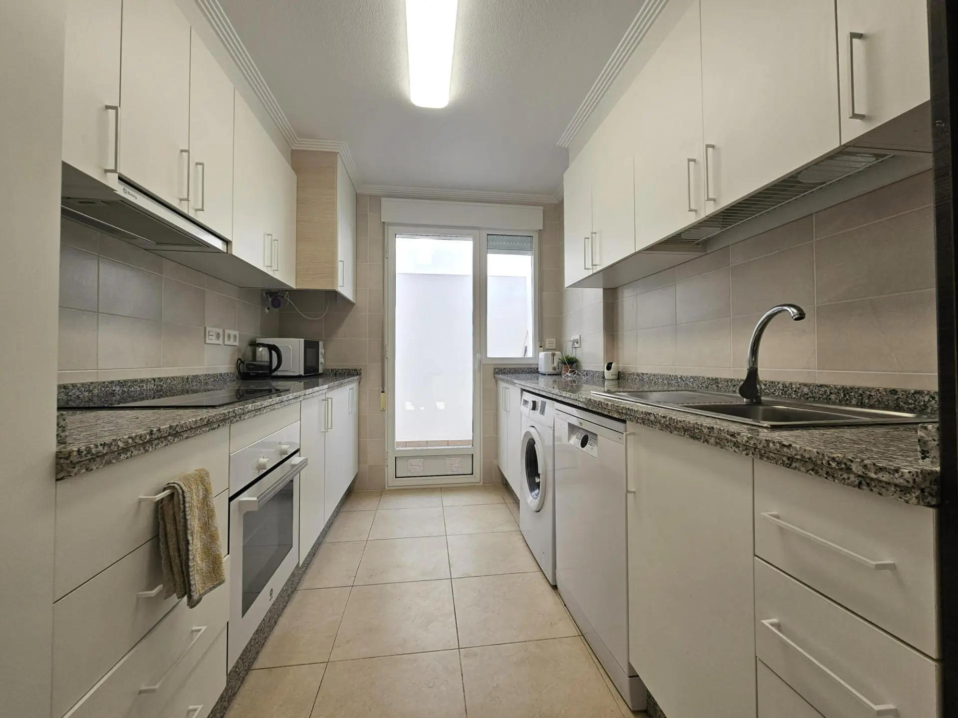 The property features an independent kitchen, which comes fully equipped and offers plenty of storage space. Access to a back patio enhances convenience, allowing you to step outside easily. This kitchen layout is beneficial for anyone who enjoys cooking or entertaining at home.