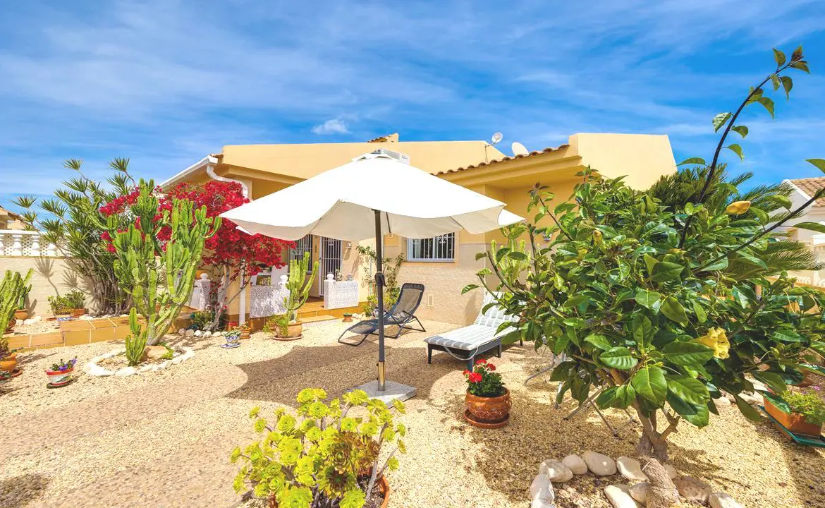 White Villas in Spain is thrilled to present this semi-detached villa, boasting a total of 71 square meters nestled on a generous 176 square meter plot. This home is designed not just for living, but for thriving. With its prime south-facing orientation, you can bask in natural light from sunrise to sunset, creating an inviting atmosphere.