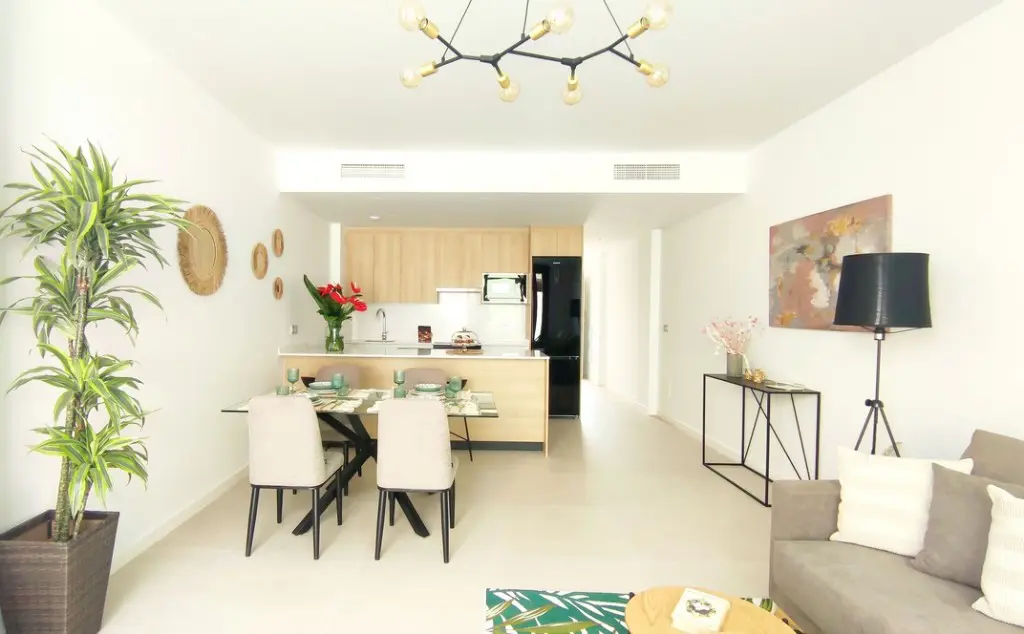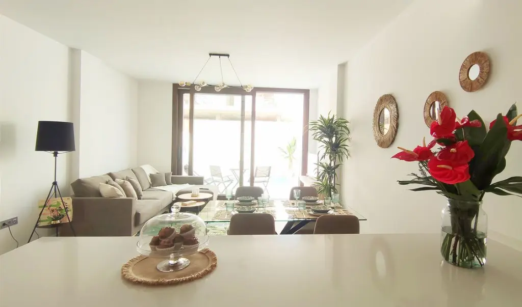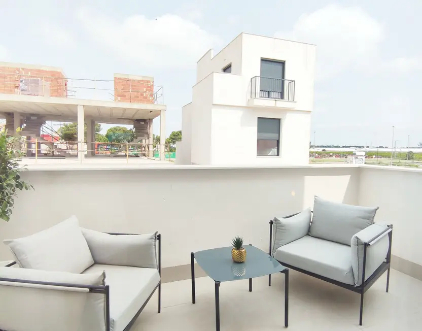 Townhouse for sale in San JavierWe are pleased to offer new townhouses in San Javier, Costa Blanca South region.Beautiful 2 levels townhouses with 3 bedrooms, 2 bathrooms, a bright living room and a kitchen. Each house has a solarium, terraces and swimming pool.San Javier is a wonderful area of the Costa Calida, located on the coast of the Mar Menor. Mar Menor is a small sea water which warms up much earlier than the sea, and keeps the temperature much longer. What makes the bathing season on the shores of the Mar Menor are much higher than in other areas.In San Javier you will find a well-developed infrastructure. Everything necessary for living and recreation can be found in a walking distance.