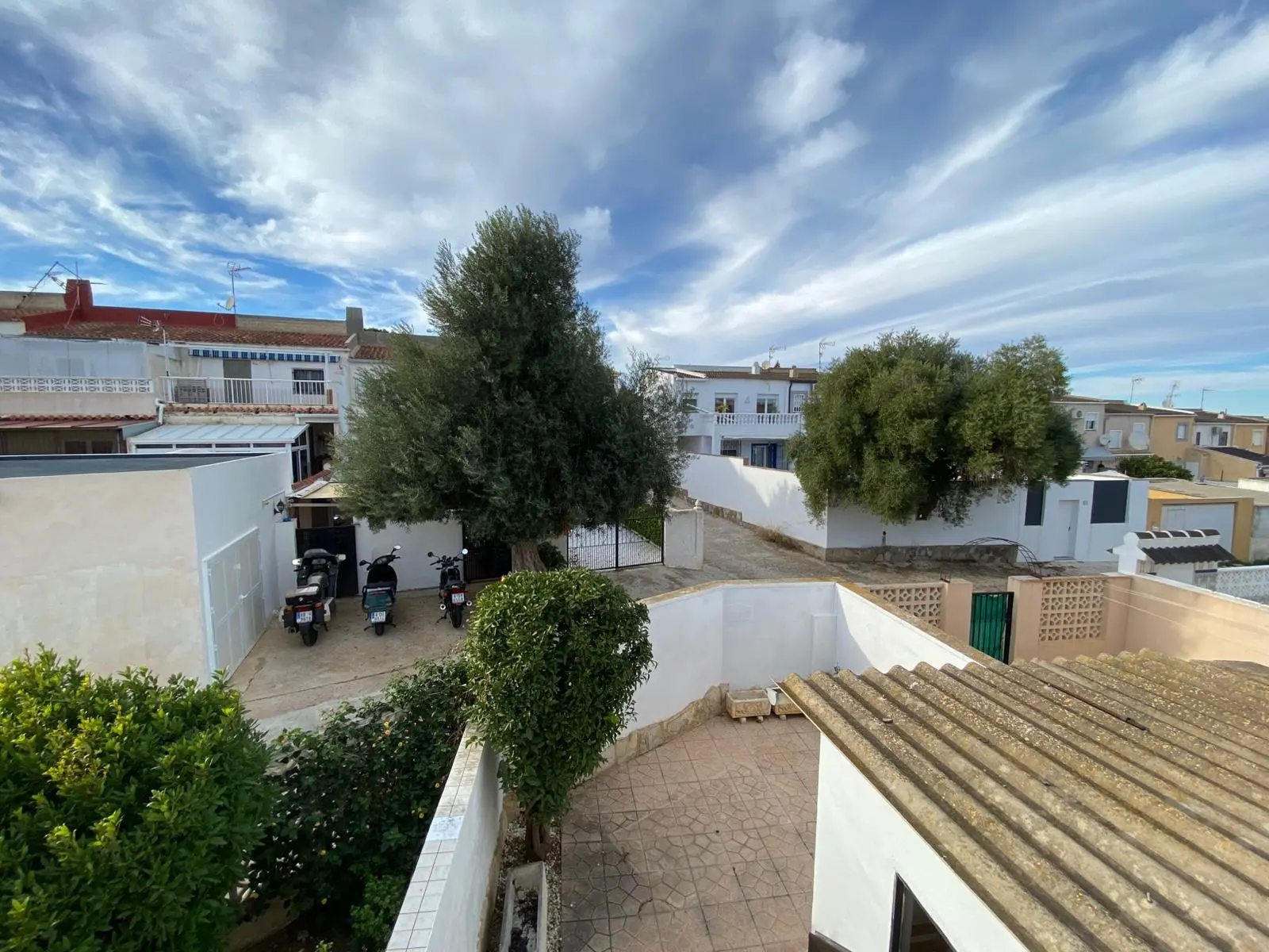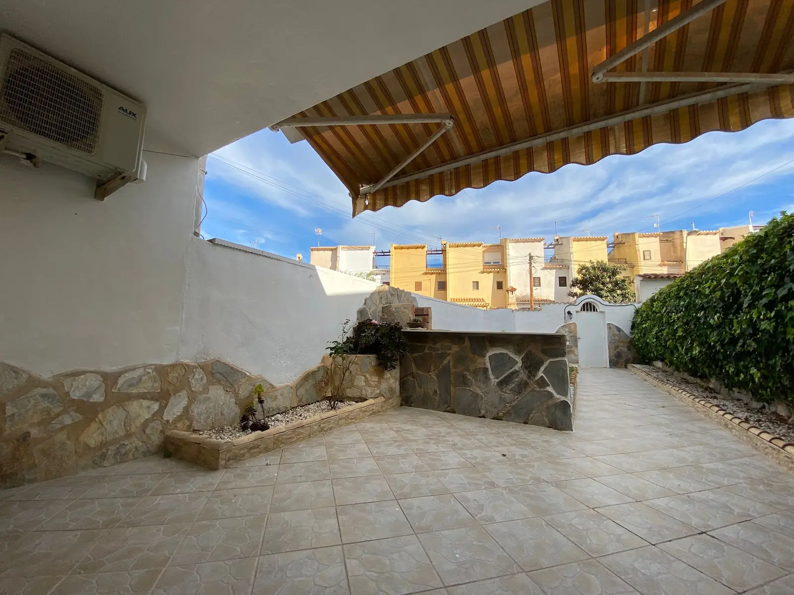 Townhouse with a spacious front garden, terrace and barbecue area, including aluminium garden furniture — ideal for outdoor living.On the ground floor you’ll find a large living-dining room with view towards the terrace, an open-plan kitchen, a bathroom, a storage room under the stairs, and a rear yard with a garden and a large laundry/storage room that could potentially serve as an additional bedroom.On the first floor there are three bedrooms with built-in wardrobes; the master bedroom includes air conditioning and access to a glazed balcony, plus a full bathroom.The windows are double/insulated glass. The kitchen and laundry room come fully equipped.
