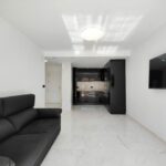The house includes a well-lit living room complete with a dining area. This space is designed for functionality and ease of use. Adjacent to the living area is a fully equipped American-style kitchen, ideal for preparing meals and entertaining guests.