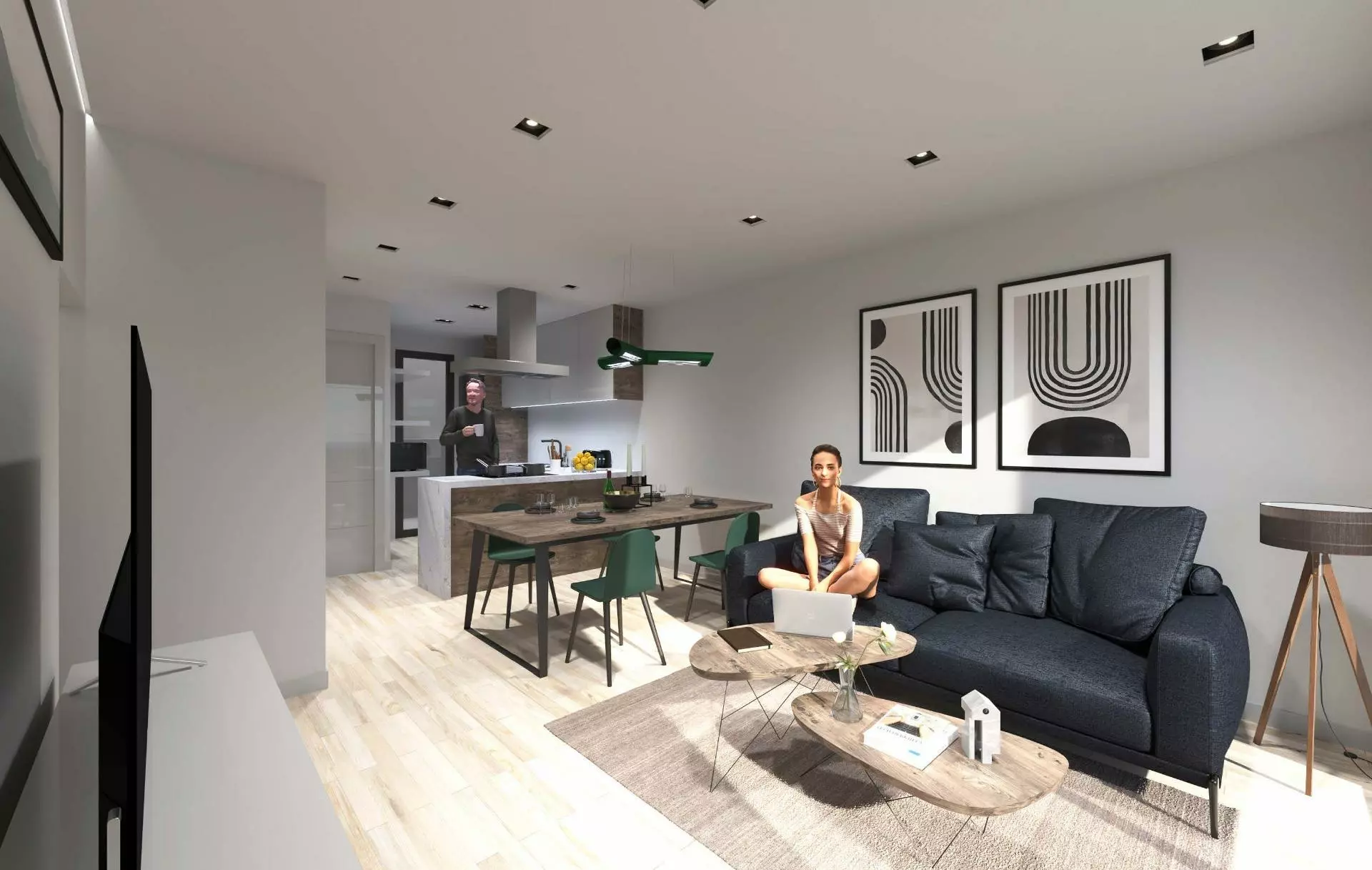 Each townhouse consists of three floors, complete with a private solarium that provides open views and serves as a relaxing outdoor space. The interior design includes integrated LED lighting and contemporary finishes. The open-concept layout allows for ample natural light to flow through the living and dining areas.