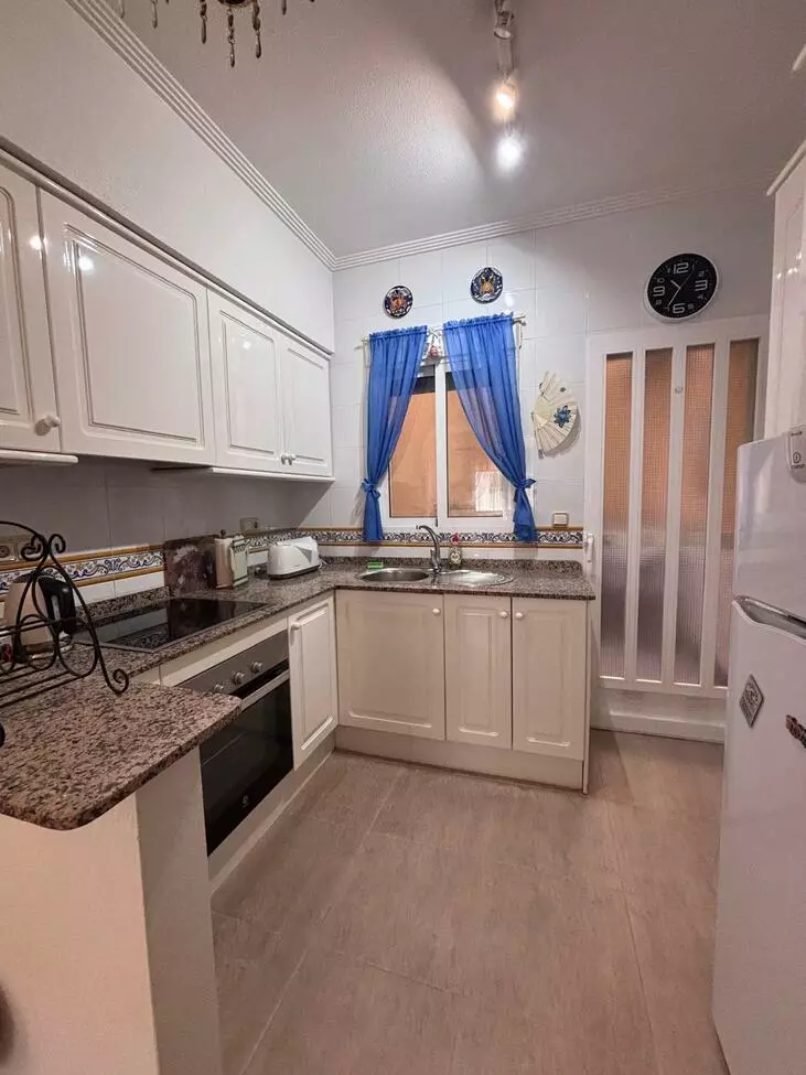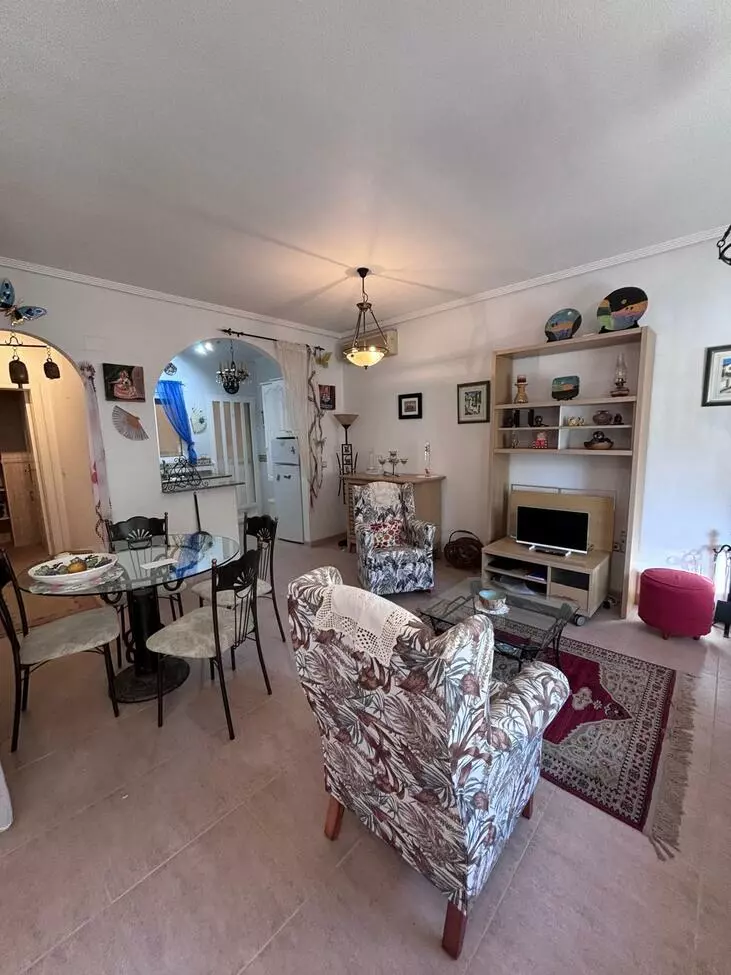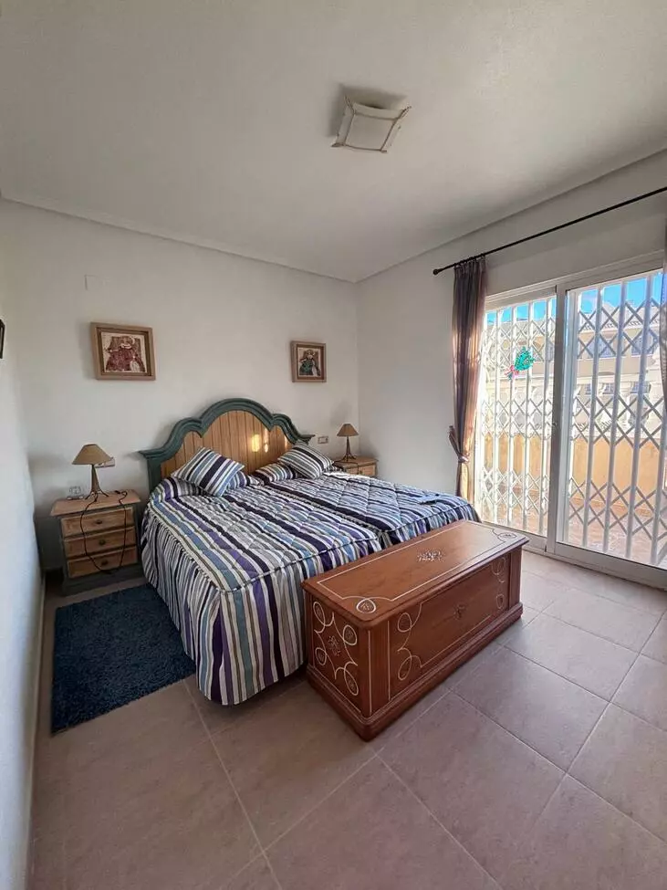 This two-bedroom townhouse is located in a secure gated community in the Villamartin area. The property includes a front terrace that receives morning sunlight, suitable for outdoor dining or relaxation.