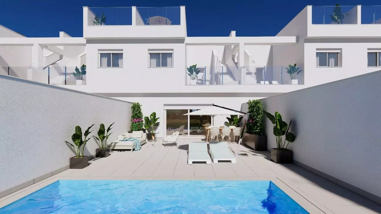 Discover an exclusive residential development of 31 new-build townhouses located on the frontline of La Serena Golf in Los Alcázares, just 600 meters from the Mar Menor. Situated in the heart of the Costa Cálida, this setting combines golf, beach, and a Mediterranean lifestyle. With all necessary amenities nearby and excellent road access, it serves as an ideal location for both holidays and year-round living.