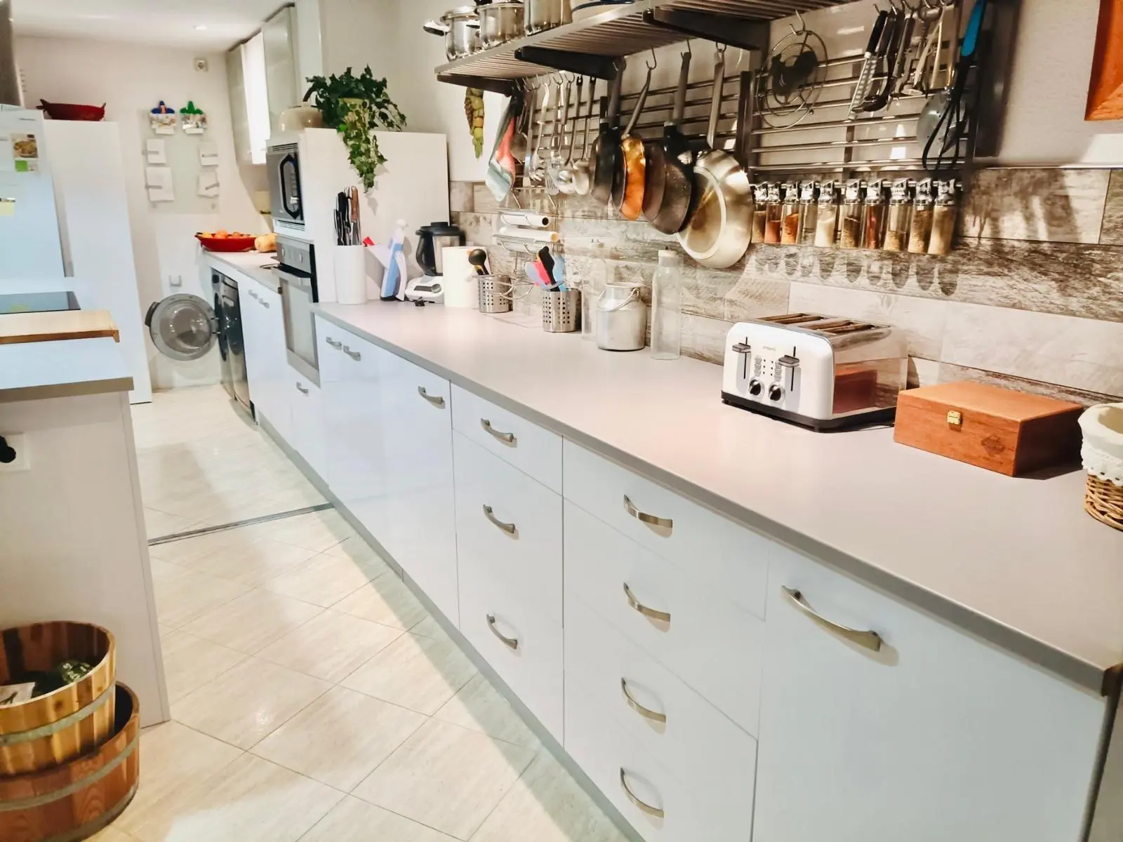 This duplex is located in Torrevieja, a coastal city in Alicante, Spain. It features three bedrooms and two bathrooms, making it a practical option for families or individuals seeking extra space. The property is part of a community that offers various amenities, such as swimming pools and communal areas.
