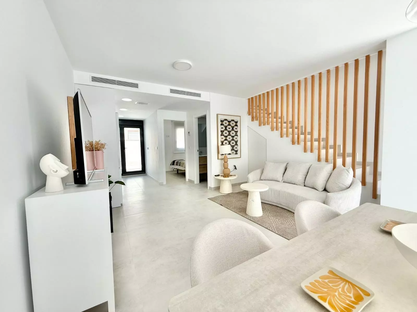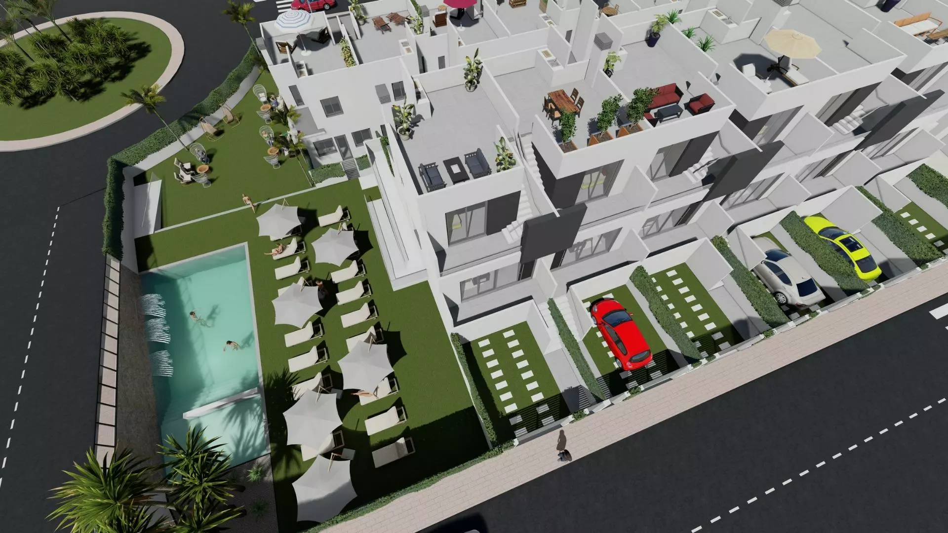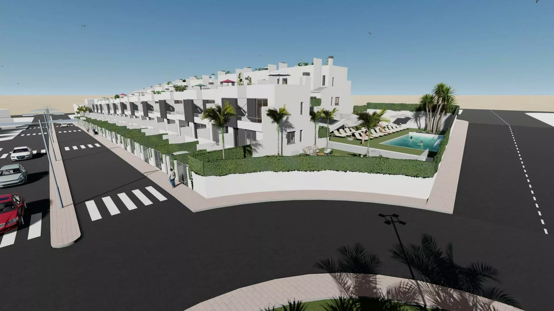 Explore a new residential development of 44 modern townhouses in Cox, Alicante. These homes offer 2- and 3-bedroom layouts, each equipped with a private solarium, terraces, patios, and private parking. The community is designed with shared areas, featuring a communal swimming pool, which serves as a great spot for relaxation during warm days.