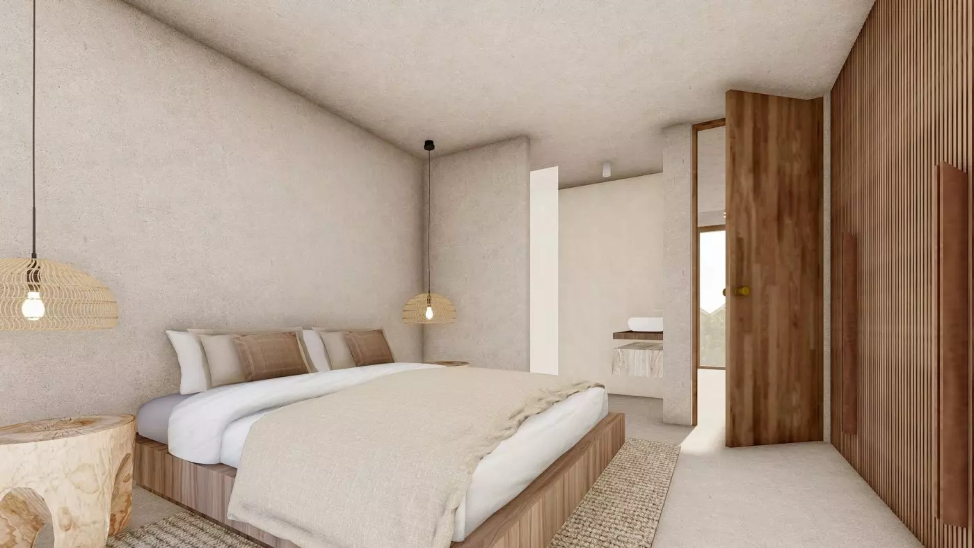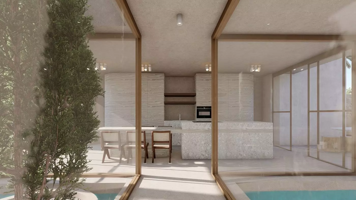 Each townhouse includes three bedrooms and two bathrooms, ideal for families or those seeking additional guest space. The open-plan kitchen flows seamlessly into the living area, making it easier to entertain or enjoy daily activities. An 18-meter swimming pool is nestled between the terrace and parking space, providing a private area for relaxation.