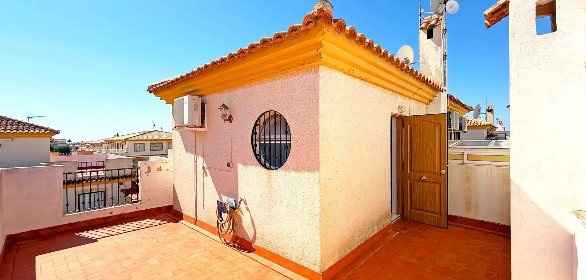 A private roof terrace adds to the available outdoor space, providing an area to relax and soak in the Mediterranean sun. This additional feature enhances the property’s appeal for outdoor enthusiasts or those who prefer spending time outside.