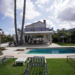 The villa comes partly furnished and includes air conditioning with split units installed in the bedrooms for temperature control. Residents have access to a community pool, alongside landscaped gardens that enhance the outdoor living experience. The structure was built in 2007 and has undergone a full renovation in 2024, ensuring modern amenities and design.