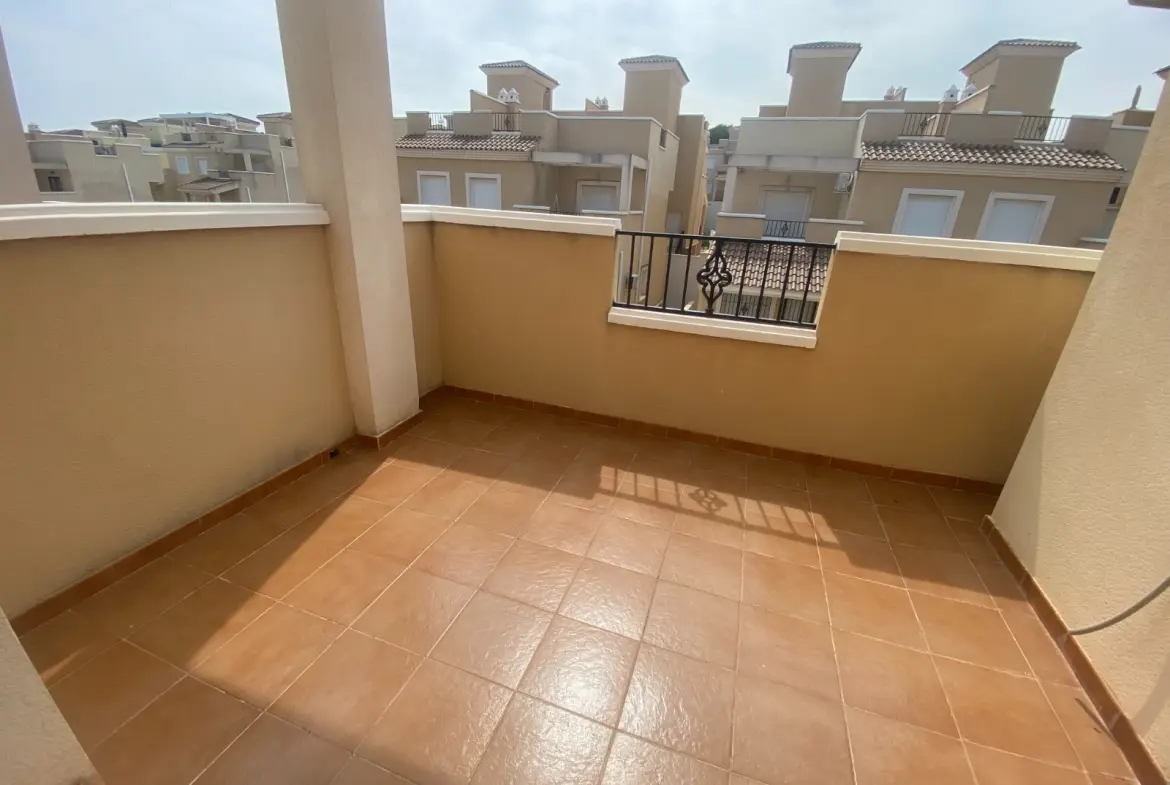 This semi-detached villa features 3 bedrooms and 2 full bathrooms, situated in a residential area just outside San Miguel de Salinas. It includes a 122 m² plot and a built area of 147 m². The property is oriented East–West, allowing for ample natural light throughout the day.