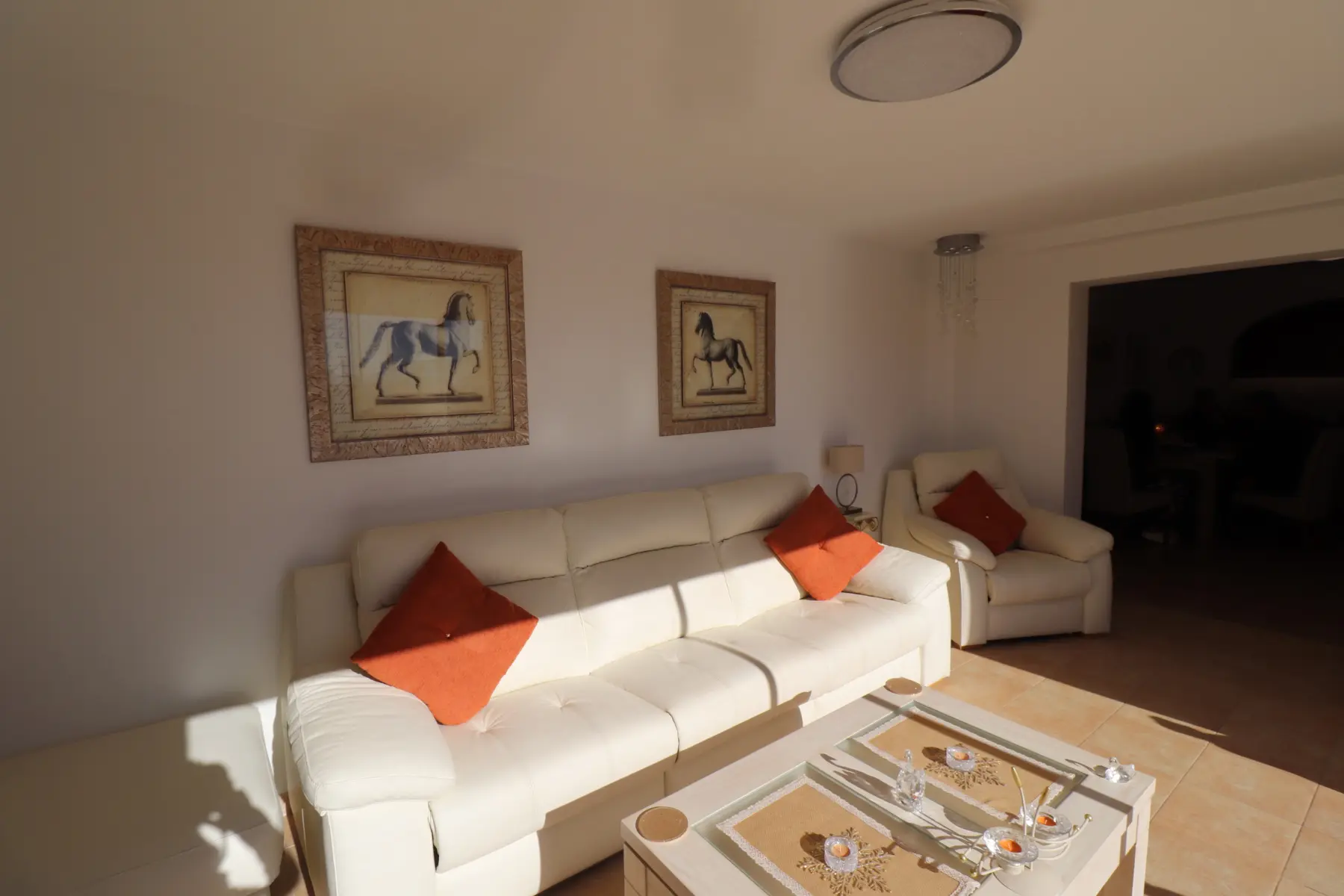 The standout feature of this house is the 70 square meter solarium that offers mountain views, enjoys sunlight all day, and provides privacy as it is not overlooked. Additionally, there is a small storage cupboard containing the washing machine and the electric water heater. Modern amenities in the house include water, electricity, fiber optic internet, connection to the drainage network, reversible air conditioning for heating and cooling, double glazing, shutters, and mosquito screens on all windows. The house will be sold with white goods included.