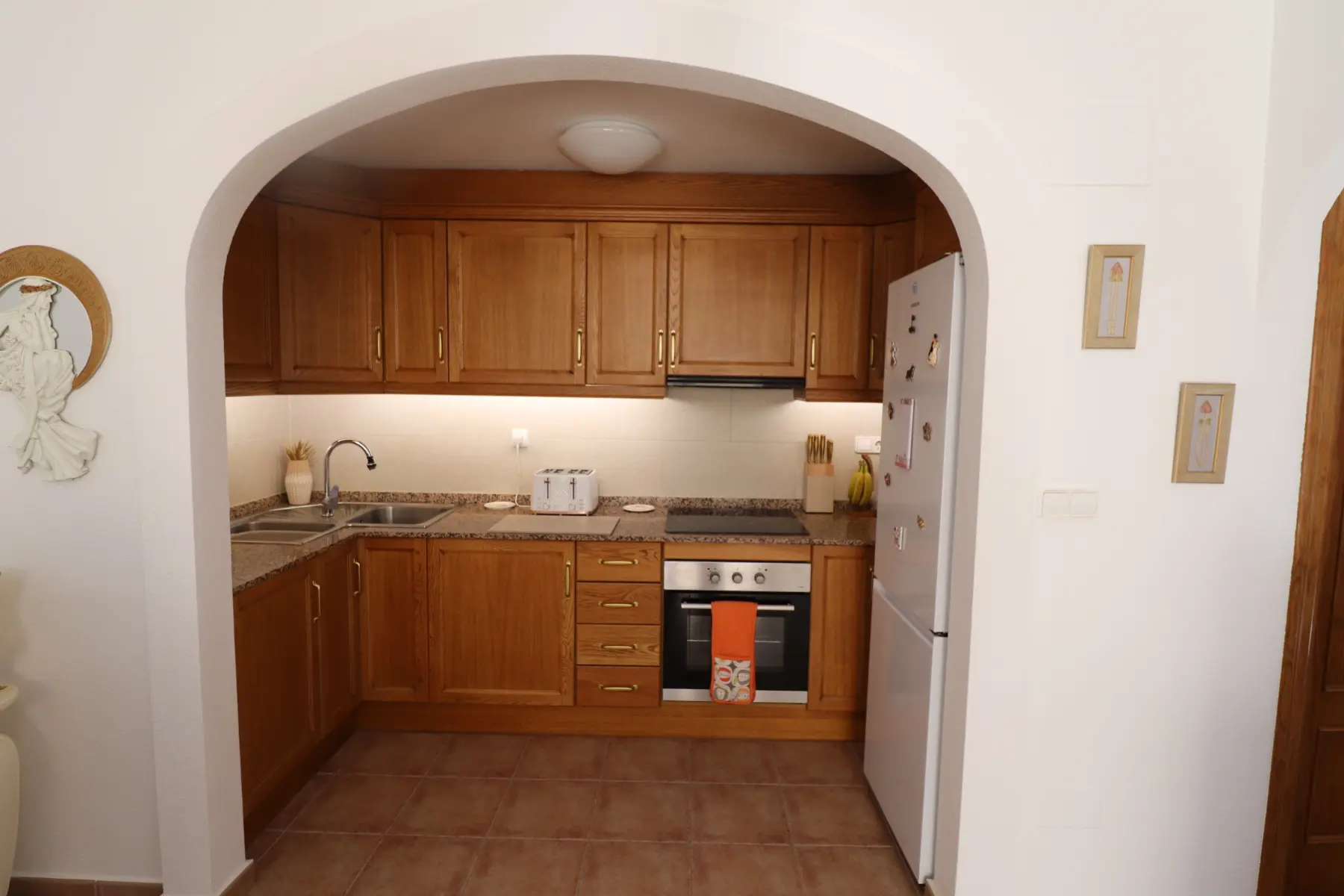 This semi-detached house is located in a quiet urbanization near several restaurants, the thermal spa of Fortuna, and less than 2 kilometers from the city with all amenities. The city of Murcia is about 20 minutes away, while the beaches and airports are around 40 minutes. The house is in excellent condition and has been decorated with care. A first terrace leads to a porch and the entrance of the house, which includes a living room with a lounge area, a dining area, and an open kitchen. There are 2 bedrooms with fitted mirrored wardrobes and 2 bathrooms, one of which is ensuite.