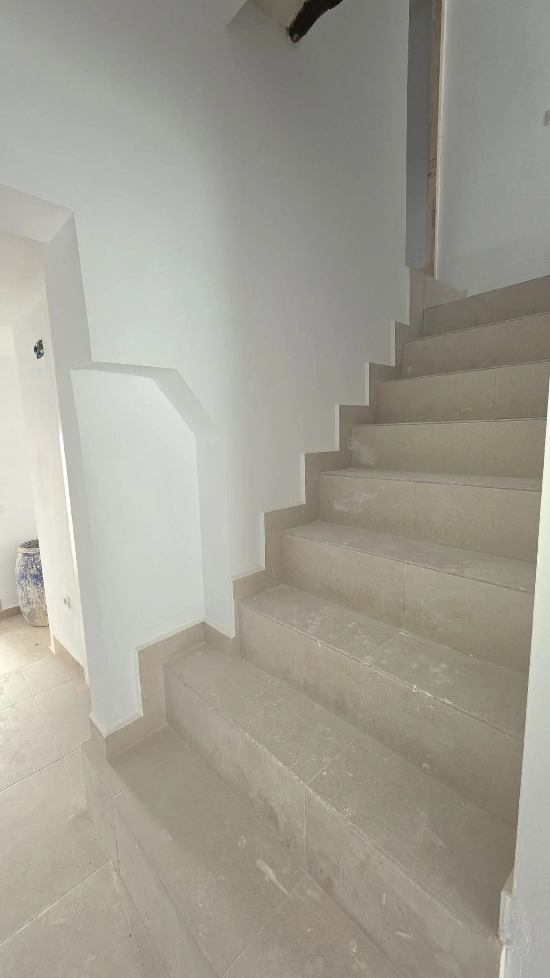 On the ground floor, you are welcomed by a comfortable living room with a fireplace that creates a warm and inviting atmosphere. This level also includes a bedroom, a fully renovated independent kitchen, a utility room, and access to a spacious private patio. The outdoor area is perfect for enjoying the Mediterranean climate, whether for relaxing, entertaining guests, or creating a pleasant al fresco dining space.