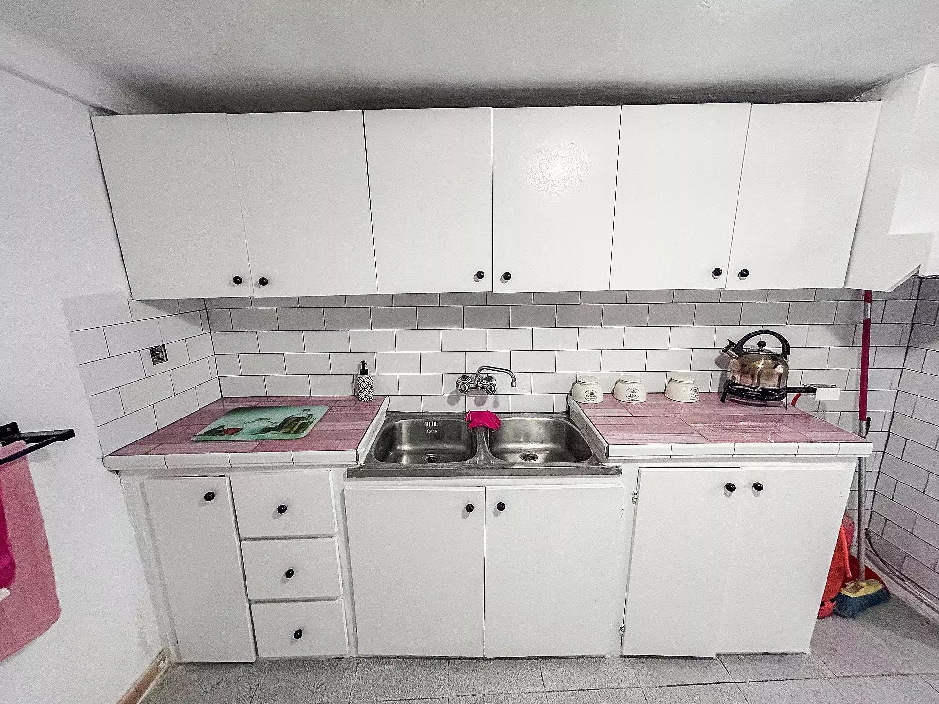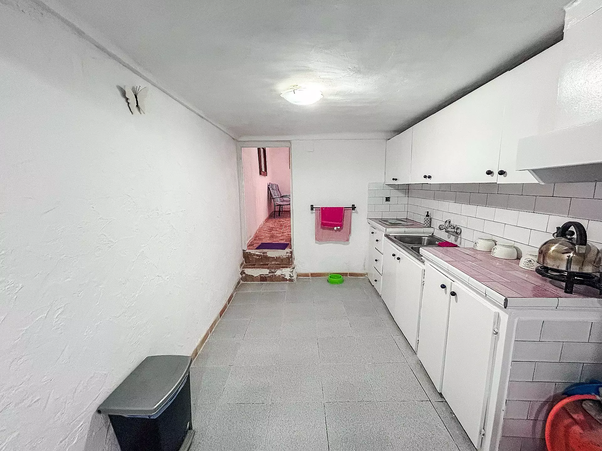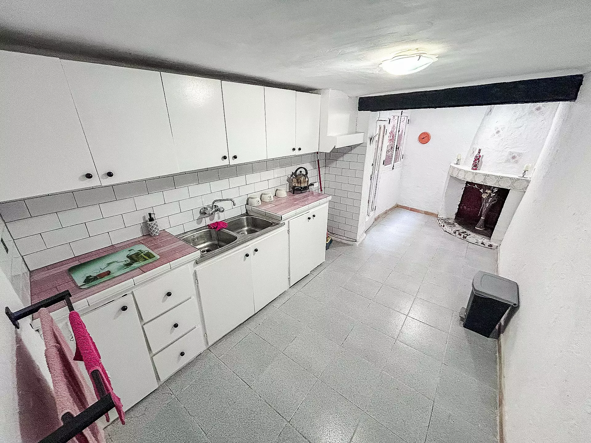 This property features a bright living room, providing ample natural light. It includes a fully equipped kitchen with a traditional fireplace and access to a small interior patio. The layout incorporates a complete family bathroom and one furnished bedroom, allowing for immediate occupancy. The spacious attic can be utilized for additional bedrooms or a study, enhancing the functional space.