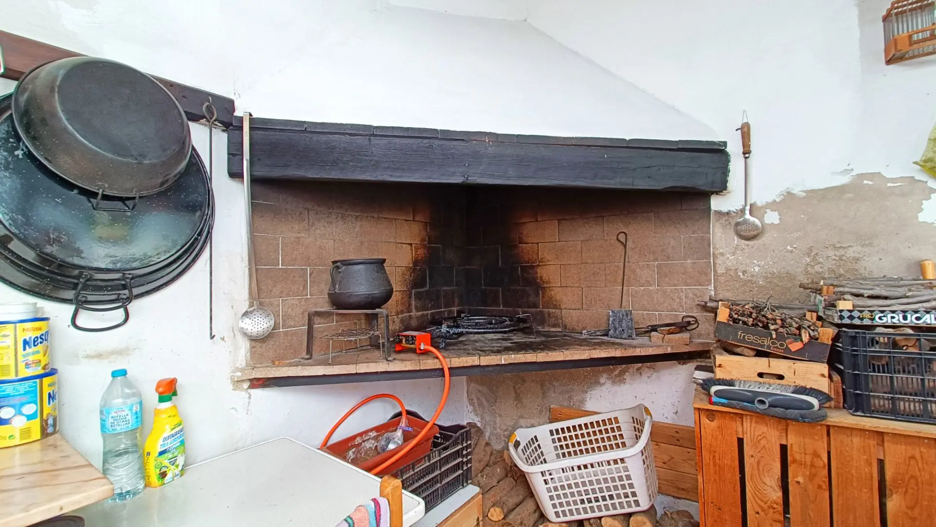 Upon entering, the ground floor features a bedroom, a dining room, and a kitchen equipped with a fireplace. This setting is suitable for everyday living and gatherings. Additionally, there is an interior patio with a barbecue, convenient for hosting family cookouts or enjoying evenings outdoors.