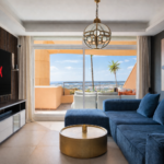 From the balconies and the patio, there are unobstructed views of the surrounding mountains, the swimming pool, and the natural landscape of the Messara region.