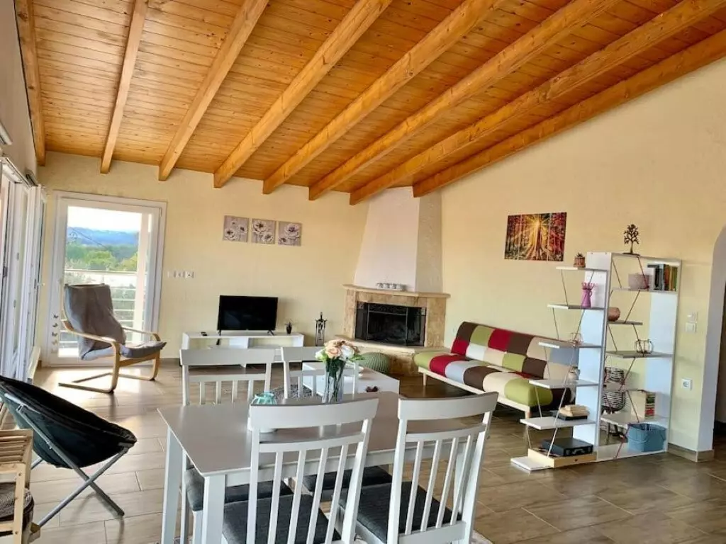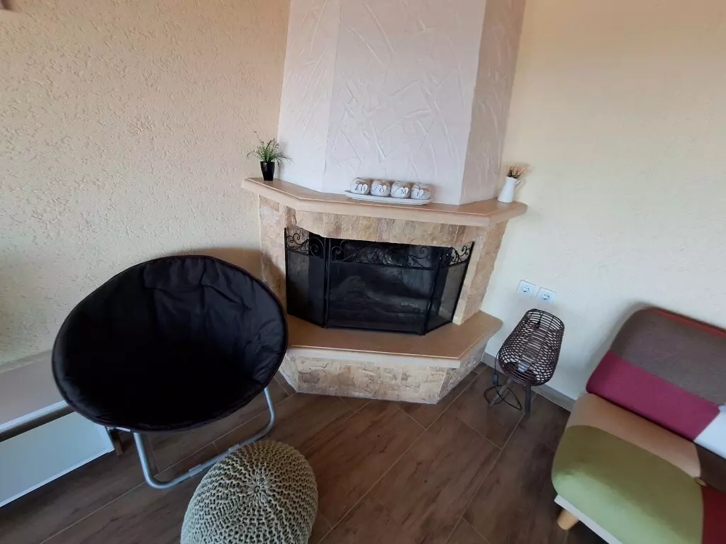 The flat has a double-frontage layout, offering views of both the city and the sea from its windows. This layout not only enhances the natural light but also allows for picturesque scenery. The apartment is equipped with essential features, including a fireplace, air conditioning, and heating, ensuring that you have a comfortable environment year-round.