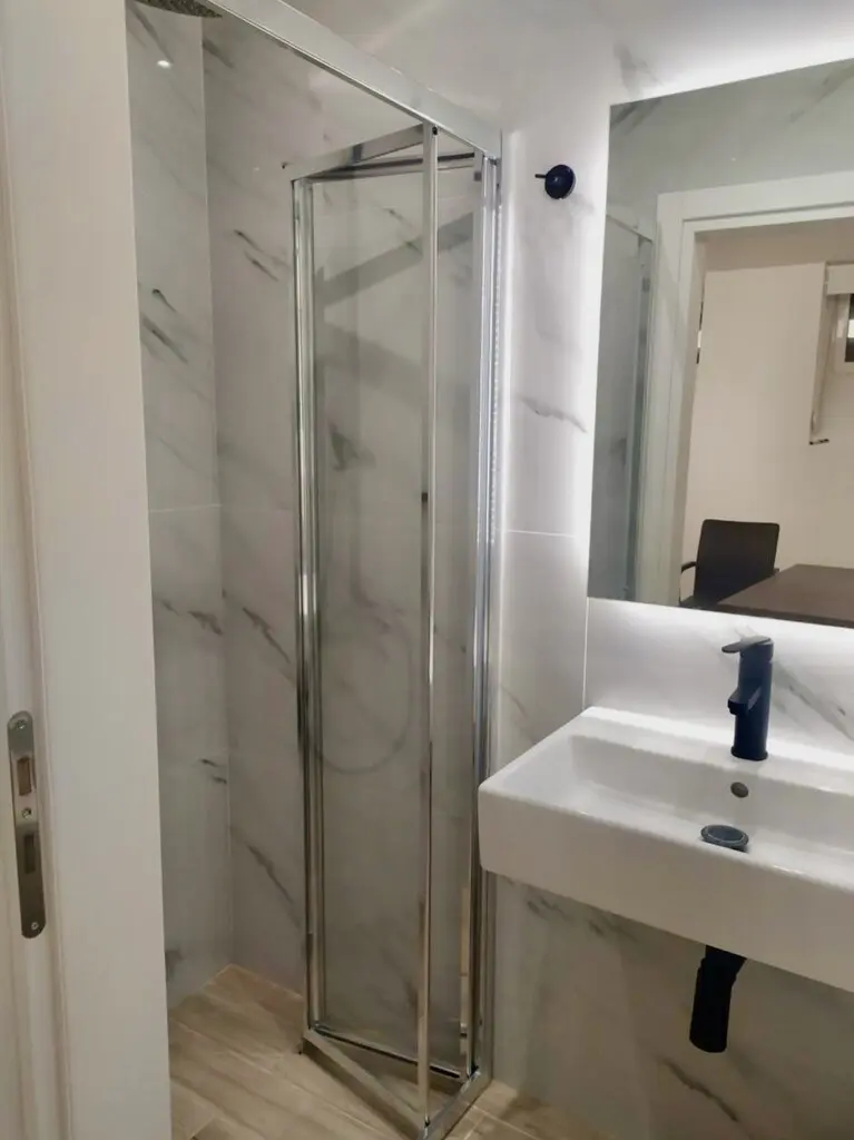 This apartment features two bedrooms, which provide enough space for residents or potential tenants. Additionally, the living room is integrated with the kitchen, creating an efficient use of space. There is also a shower WC, which is standard in many Athens apartments.