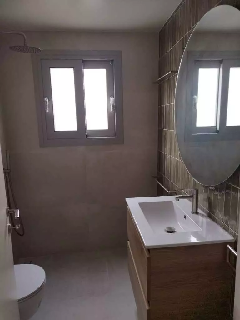 The apartment has a front layout, ensuring that you can enjoy views of both the city and surrounding mountains from the windows. This can provide a relaxing backdrop to daily life. The property is equipped with solar panels for water heating, contributing to energy efficiency. Air conditioning is also included, which can be particularly beneficial during warm months.