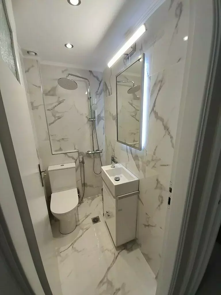 This apartment features two bedrooms, a living room that connects to the kitchen, one shower WC, and an additional WC. The double-frontage layout provides ample light and creates an inviting atmosphere throughout the unit. This design allows for flexibility when it comes to arranging your furniture and optimizing the living space.