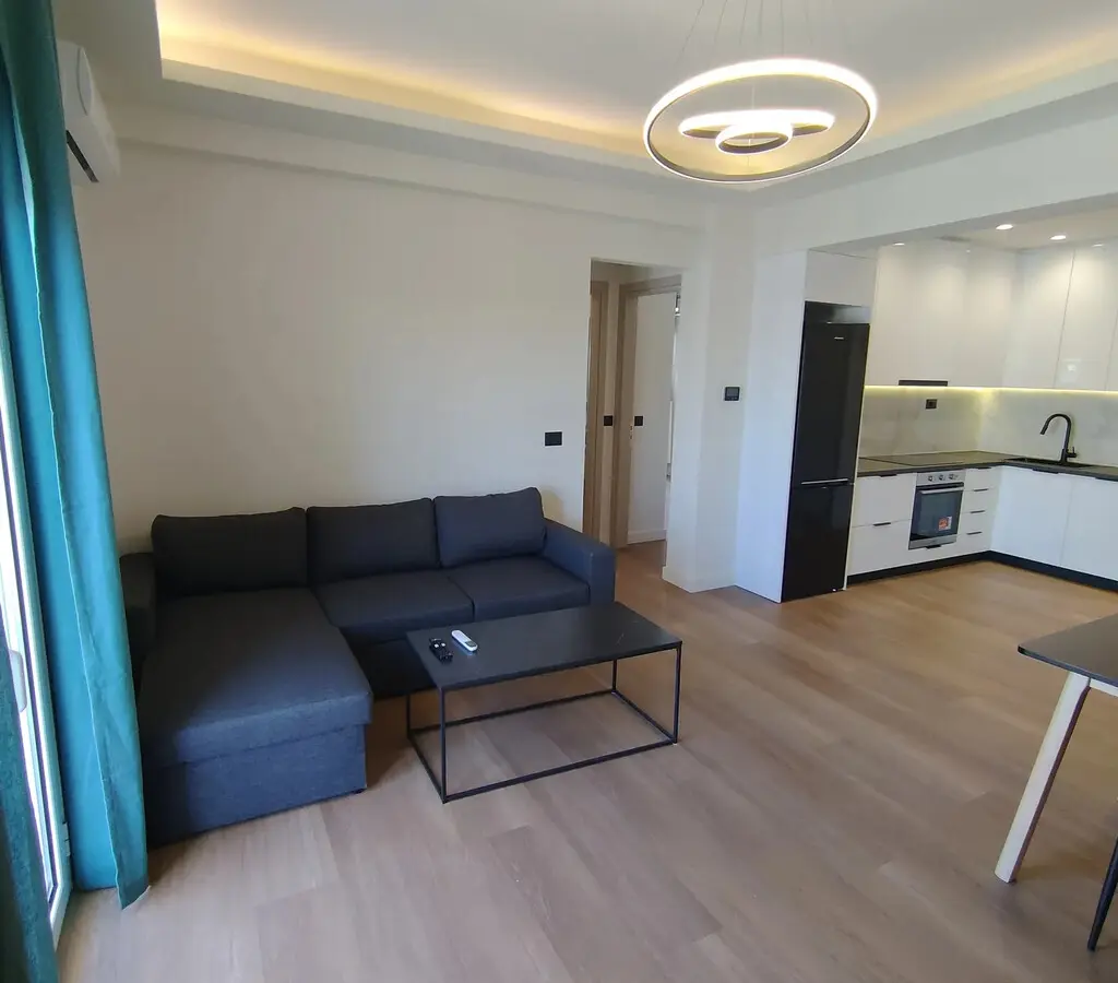The apartment presents a front layout, which allows for a view of the sea from the windows. This can be a notable feature if you appreciate natural scenery. Key systems include solar panels for water heating, air conditioning for climate control, and heating units. Additionally, awnings have been installed, which can help shield the apartment from the elements.