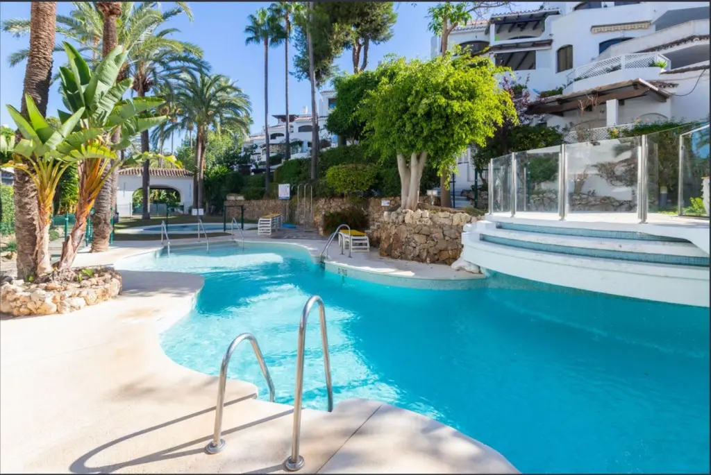 If you are searching for a property in a quiet residential community close to the beach, this two-bedroom apartment in Elviria might catch your interest. The price has been reduced from 475,000 to 395,000, providing an opportunity for a quick sale. Positioned on the first floor without a lift, it offers an east-facing orientation for bright mornings and unobstructed views over the communal areas.