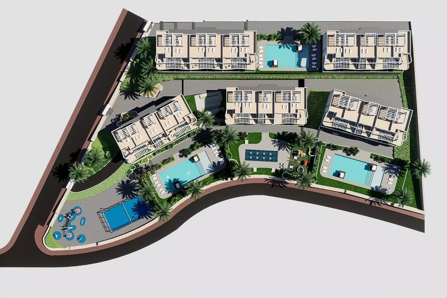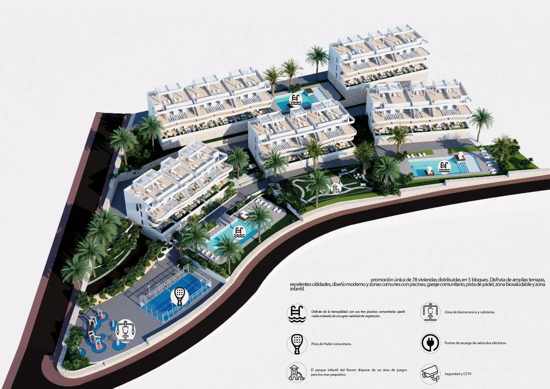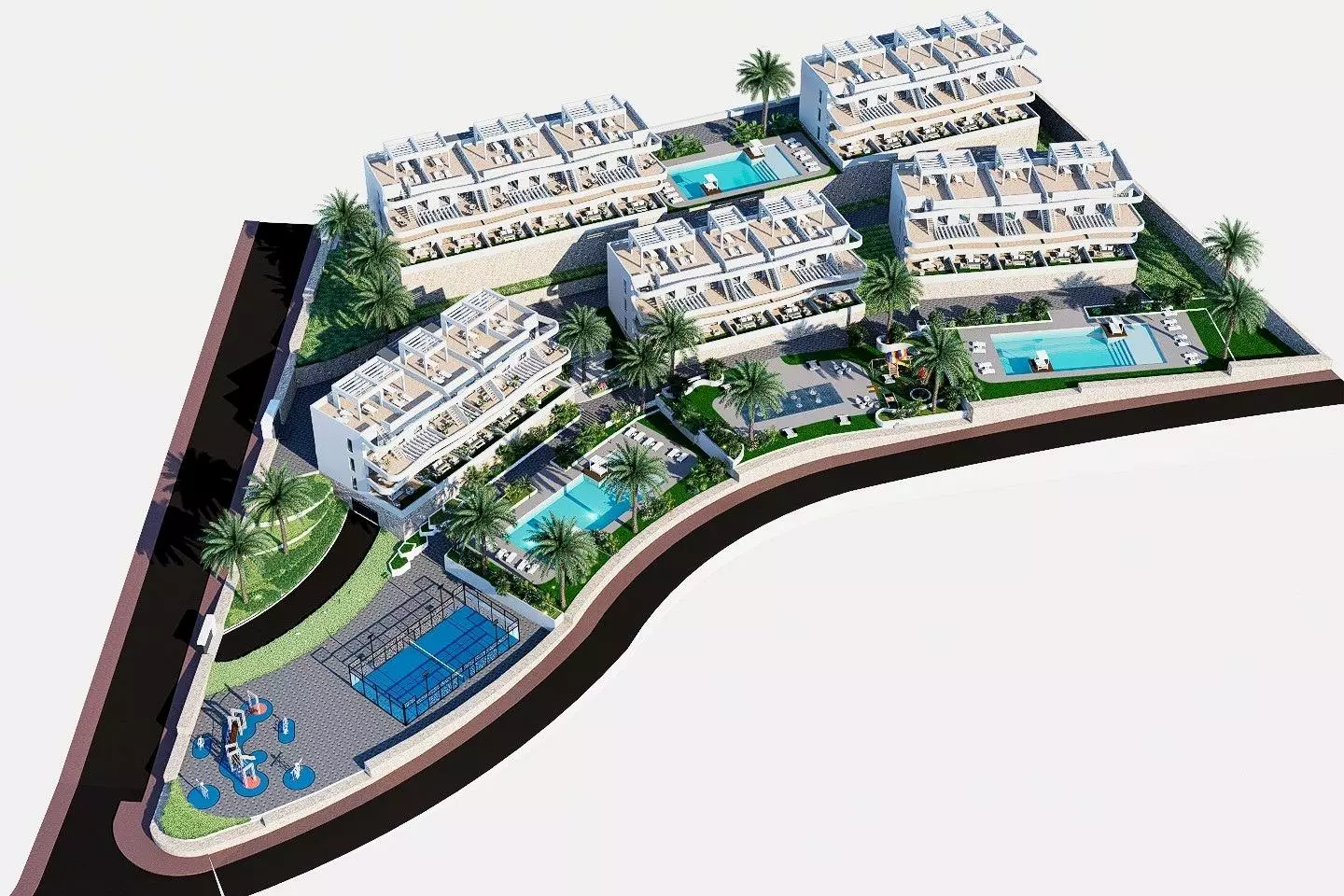 This development includes several layouts to suit different preferences. Ground floor apartments come with private gardens, ideal for outdoor activities. If you prefer middle floor apartments, you’ll find them equipped with terraces for outdoor relaxation. The top floor units stand out with private solariums that provide additional space for sunbathing or enjoying the views.