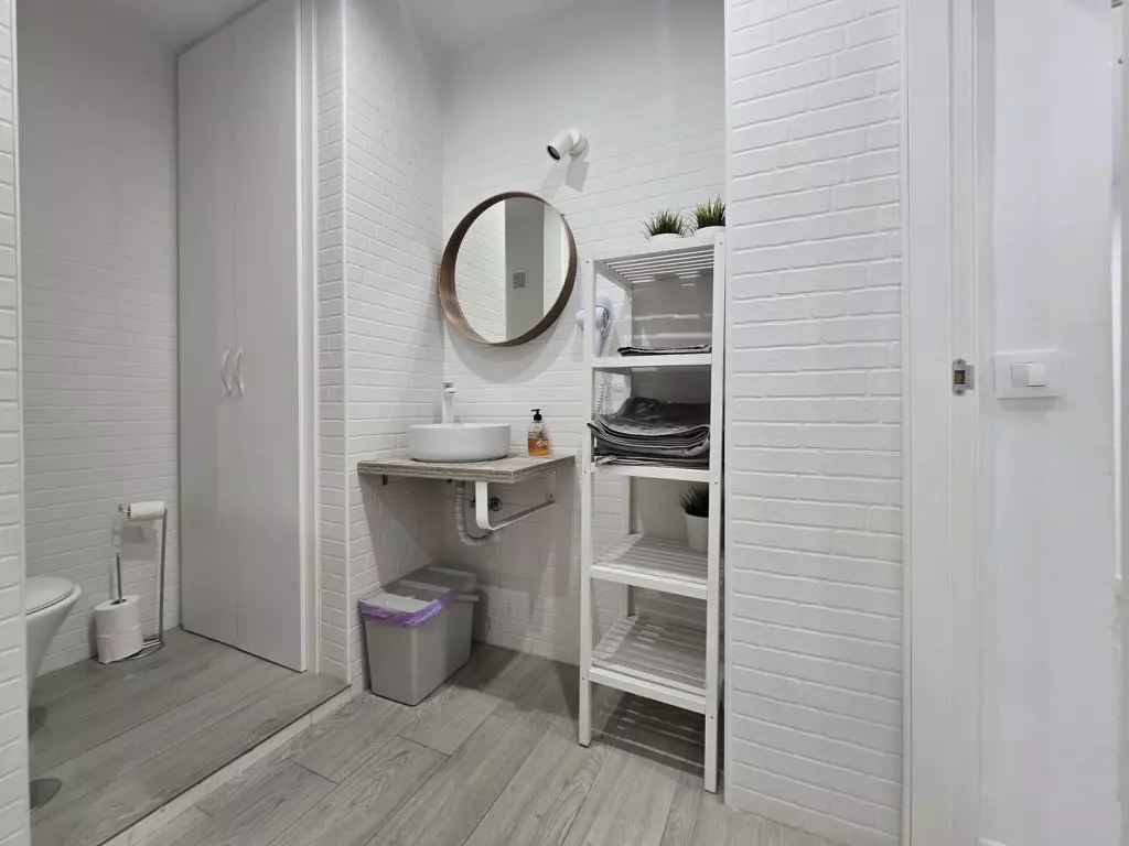 The unit itself has undergone renovations, presenting a fully equipped kitchen that caters to modern living. The layout is functional, aimed at facilitating a comfortable stay. While the property does not include a terrace, pool, garden, parking, or storage room, its advantageous placement near essential amenities balances these aspects.