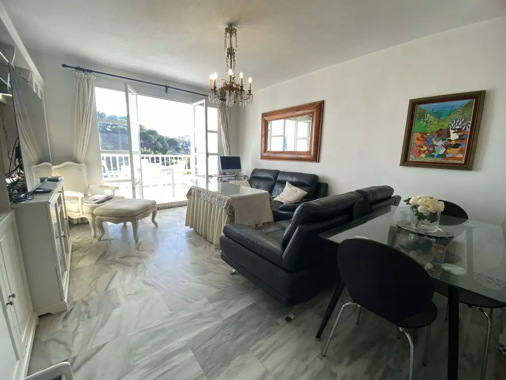 This beachside apartment presents a unique investment opportunity for those looking to enter the real estate market. With its favorable orientation to the south and west, the apartment enjoys ample natural light throughout the day and offers impressive views of the sea, coastline, mountains, and a castle.