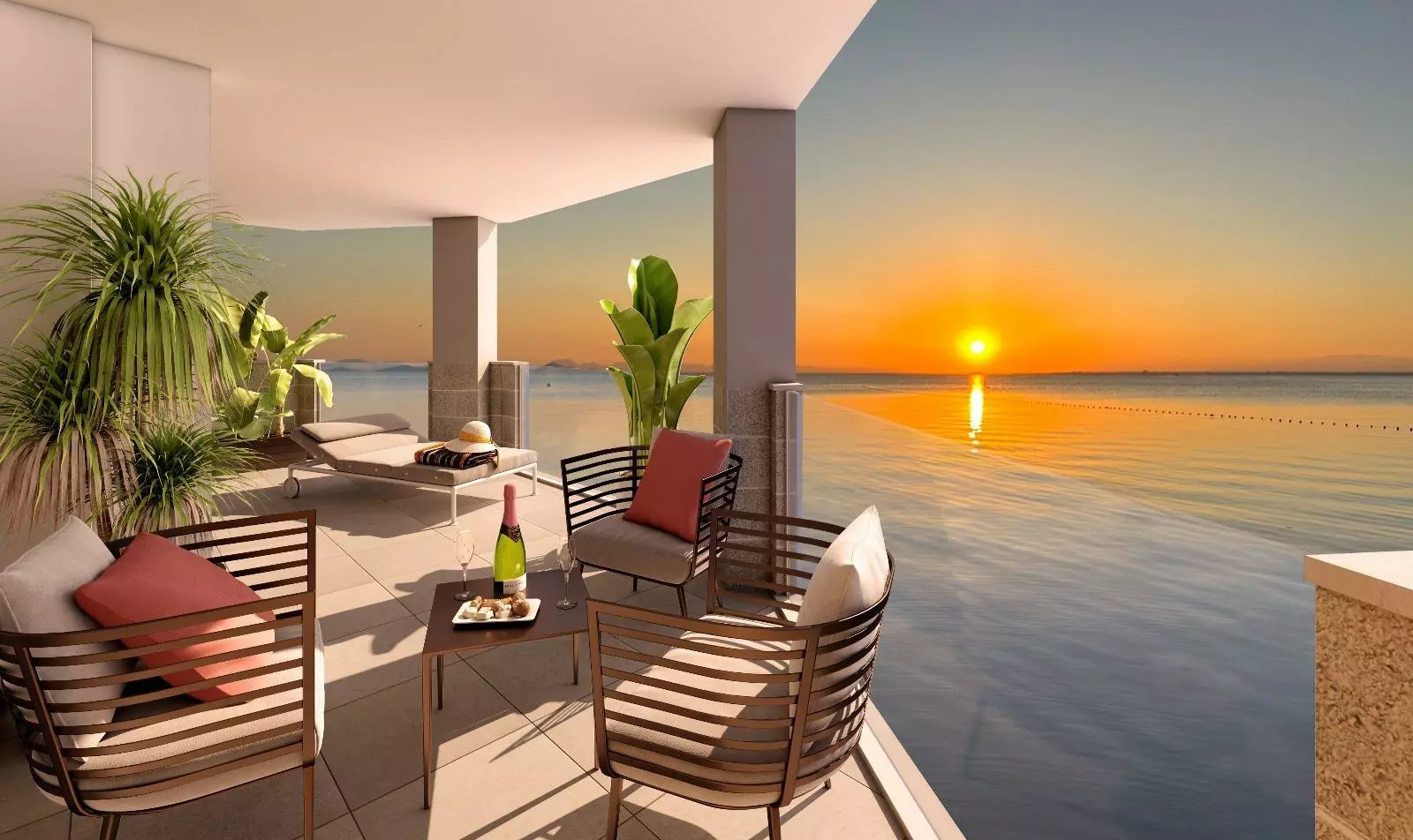 The new residential complex in La Manga is located in a unique area, nestled between two seas. This prime spot in the Region of Murcia offers convenient access to essential services and amenities. La Manga features a coastline characterized by transparent and shallow waters, attracting a diverse group of residents and visitors alike.