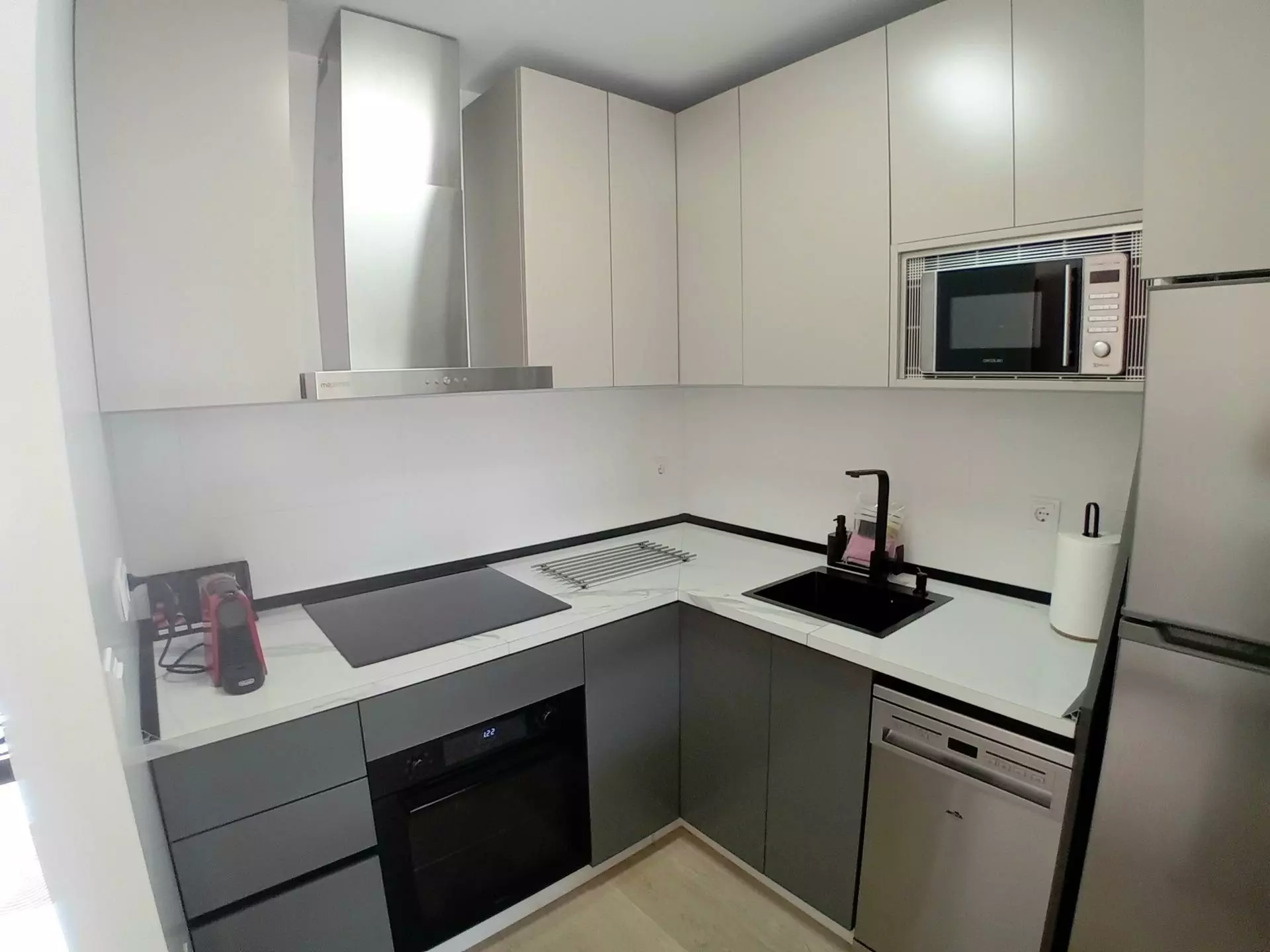 The interior of the apartment has undergone significant renovations, resulting in a high-standard finish throughout. The open-plan living and dining area contributes to a sense of space, seamlessly connecting to a private terrace. This feature allows for various outdoor activities, whether it be dining outside or simply enjoying the view.