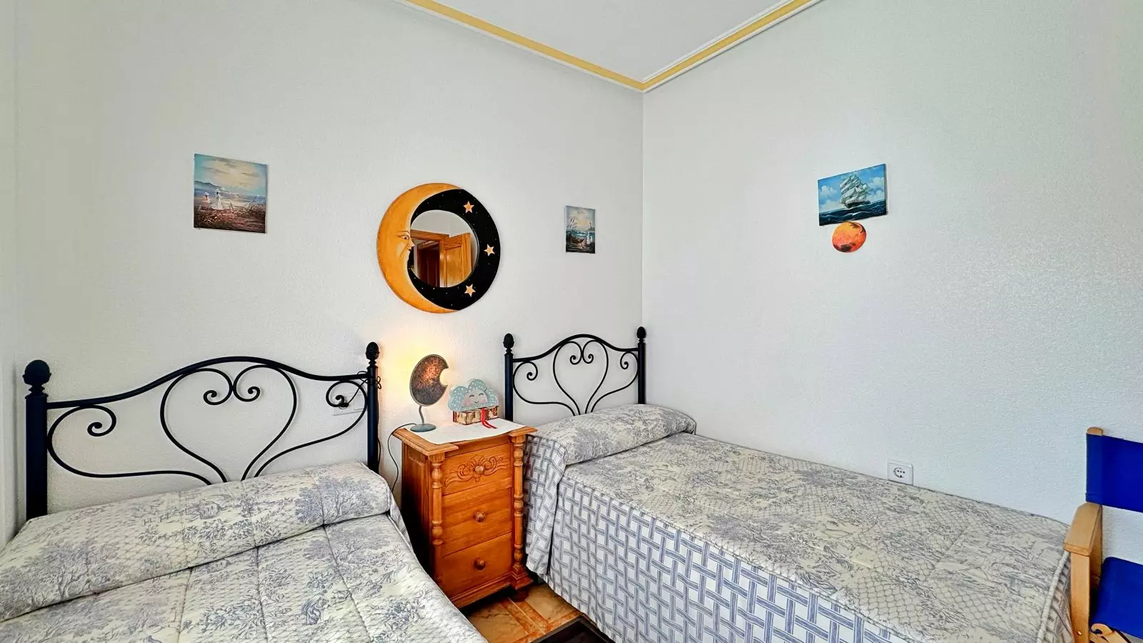 Located in the Zeniasol residential complex, this top-floor corner bungalow offers a convenient location just a short walk from La Zenia beach and the Zenia Boulevard shopping center. The property is in excellent condition, making it an appealing option for various buyers.
